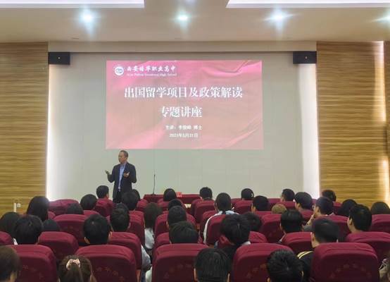 为拓展学生国际视野,提高学生培养质量,进一步拓宽升学和就业途径,5月31日,学校邀请陕西省人民对外友好协会理事李俊峰博士作专题讲座。李博士详细介绍了出国留学的最新福利政策,梳理了申请出国留学的手续和注意事项,鼓励有意向的学生提前做好留学规划。