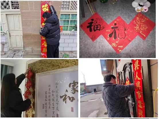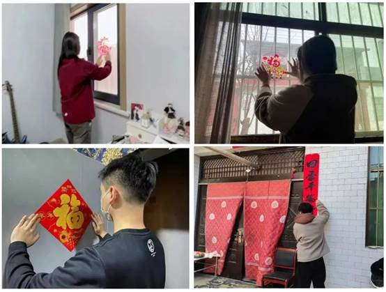 贴春联是过年的重要习俗,表达了人民对美好生活的向往和期盼。同学们纷纷亲自上阵,贴春联、挂灯笼、贴福字、挂福件,通过实际行动营造浓厚的节日氛围。