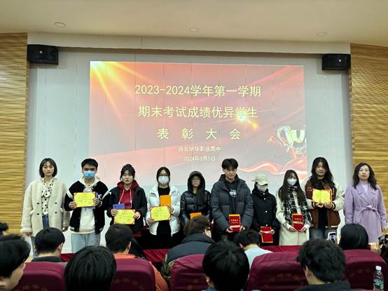 副校长宣读了《西安培华职业高中关于2023-2024学年第一学期期末考试学习成绩优异学生表彰的决定》,对刘浩楠、韩婷等53名学生进行表彰奖励。希望受到表彰的同学能够珍惜荣誉,戒骄戒躁,锐意进取,继续发挥示范引领作用,在今后的学习生活中再创佳绩。
