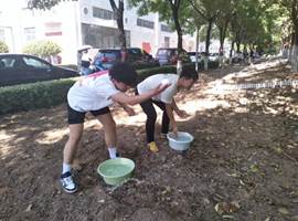 同学们在班主任的带领下分工合作、配合默契地进行耙地、播种、浇水等事宜,尽管动作和手法还不是很熟练,但依旧阻挡不了同学们劳动的热情。劳作完毕后,同学们将拔除的杂草、枯叶和碎石块清理干净,打包投放至指定位置,为一天的辛勤劳作画上圆满的句号。