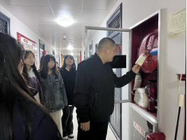 蔡国强老师带领学生熟知社区消防器材的放置位置,耐心讲解灭火器的正确使用方法,向学生认真讲解社区消防逃生示意图的具体内容,亲自示范如何在火灾发生时正确逃生,通过言传身教的方式培养学生的安全意识,提高学生的自救能力。