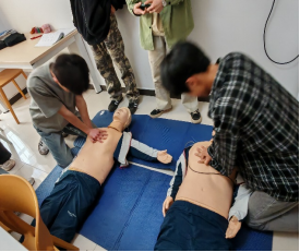 在理论讲解之后,为了确保学生们更好地领会和熟练运用这些技能,借助模拟人,对心肺复苏的具体操作步骤进行了现场演示。学生们热情高涨,全神贯注地投入到学习中,在老师的悉心指导下,大家纷纷上手练习,相互交流学习。