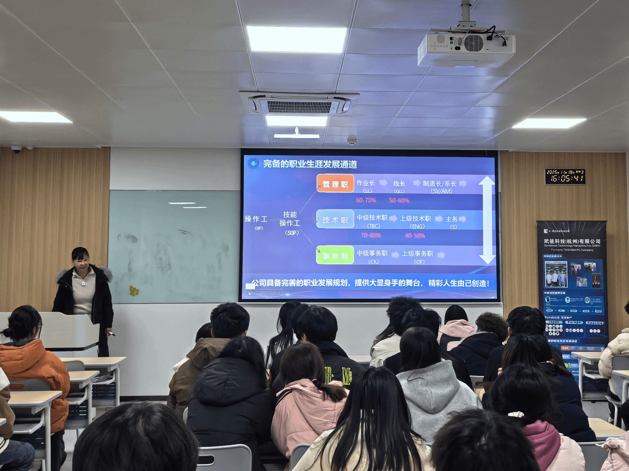 为切实做好2026届毕业生岗位实习工作,引导学生明确实习目标与任务,2025年11月19日下午,我校邀请玳能科技(杭州)有限公司进校开展宣讲活动。