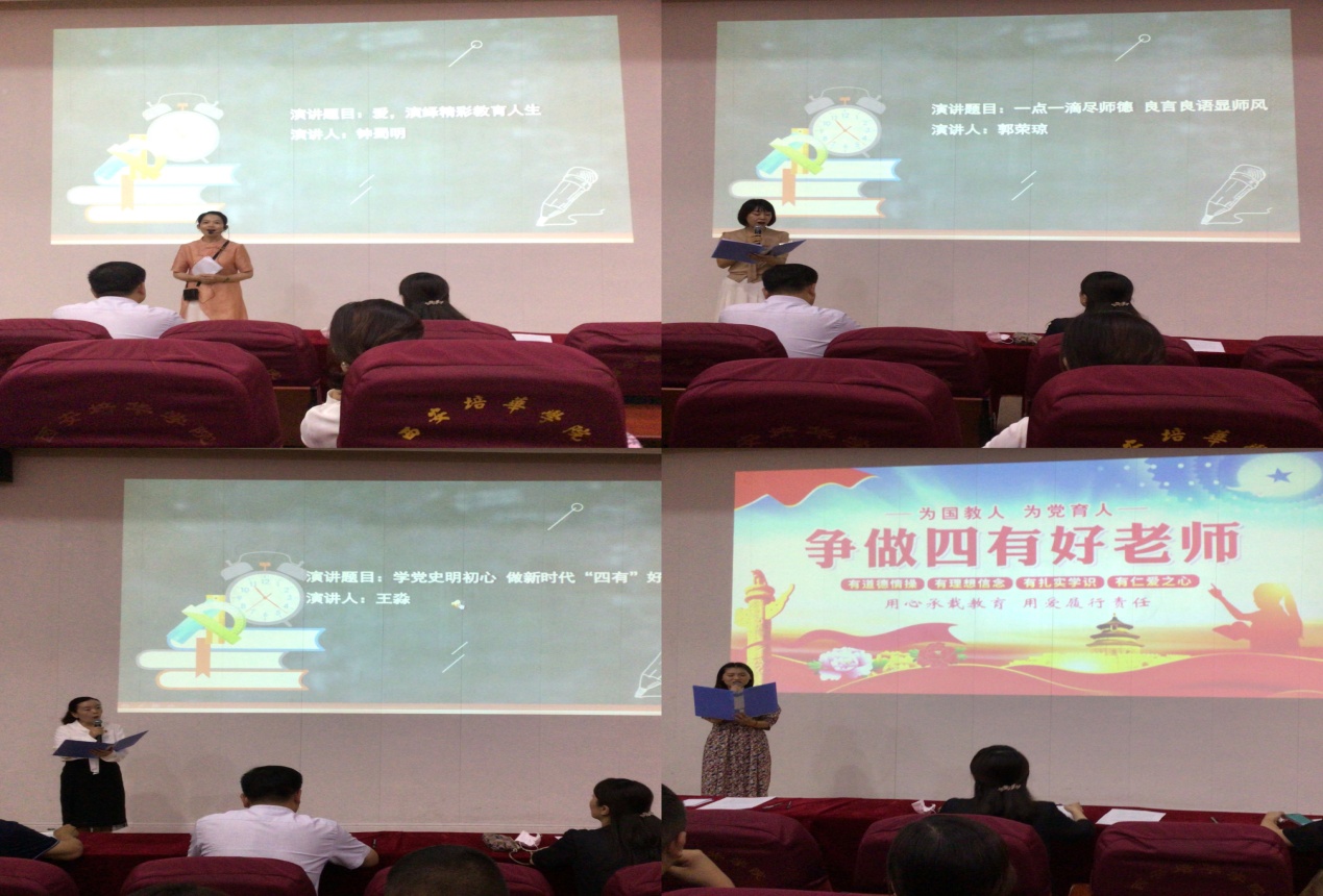 为了迎接党的二十大召开,进一步增强党员干部“四个意识”,争做“四有”好教师,我校党支部于2022年6月27日在格物楼J102开展了喜迎党的二十大,争做“四有”好老师”师德师风专题演讲比赛。党支部书记罗永辉、副校长席小武、副校长宁宇参加了活动,比赛活动由党务干事杜苗果老师主持。