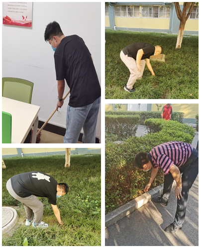 在打扫完公寓卫生后,同学们来到劳动实践负责区域打扫卫生。同学们将草丛里的垃圾捡起投掷到垃圾桶,老师们也积极加入到打扫卫生的队伍中,和同学们一起参加劳动实践教育活动。通过大家的集体努力,劳动实践教育负责区域变得干净无比。