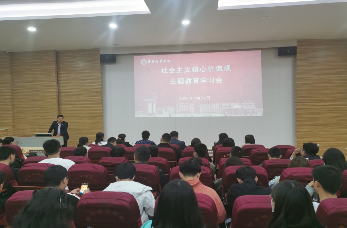 为庆祝中国共产党成立100周年,深入贯彻学习习近平新时代中国特色社会主义思想,引导学生进一步践行社会主义核心价值观,增强学生的责任感和使命感,我校党支部于2021年4月26日在格物楼J102教室召开了“社会主义核心价值观”主题教育会,党支部书记罗永辉、党务干事杜苗果及全体党员和学生代表参会,会议由团委书记蔡国强老师主持。