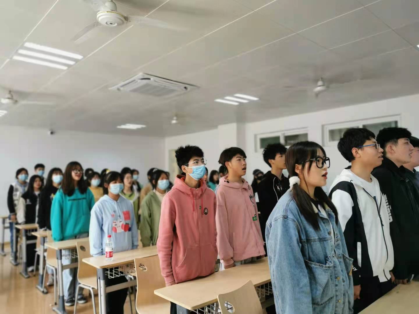 活动在嘹亮雄壮的共青团团歌歌中拉开帷幕,全体团员青年们情绪饱满、昂首挺立,大声地唱着“我们是五月的花海,用青春拥抱时代;我们是初升的太阳,用生命点燃未来”。恢宏的气势和铿锵有力的声音展现着同学们身为共青团员的骄傲与自豪。