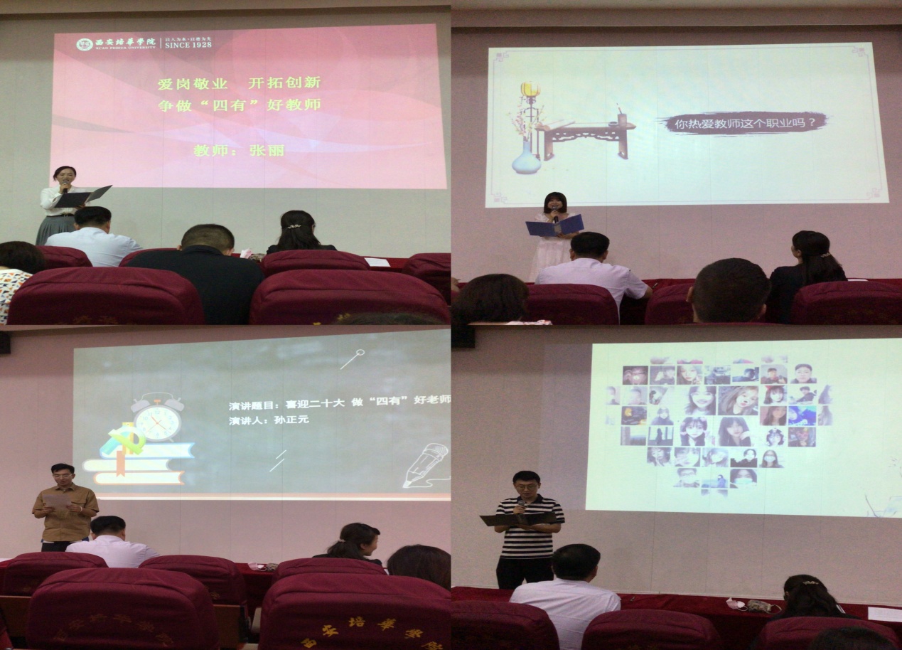 为了迎接党的二十大召开,进一步增强党员干部“四个意识”,争做“四有”好教师,我校党支部于2022年6月27日在格物楼J102开展了喜迎党的二十大,争做“四有”好老师”师德师风专题演讲比赛。党支部书记罗永辉、副校长席小武、副校长宁宇参加了活动,比赛活动由党务干事杜苗果老师主持。