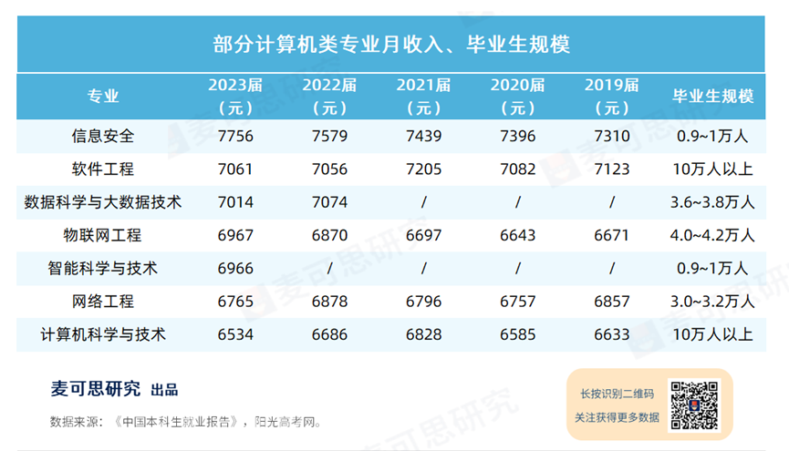 根据《2024年中国本科就业报告》(就业蓝皮书)所示,2019届-2023届软件工程专业毕业生规模维持在10万人以上大体量,薪资始终位居高薪榜前列。