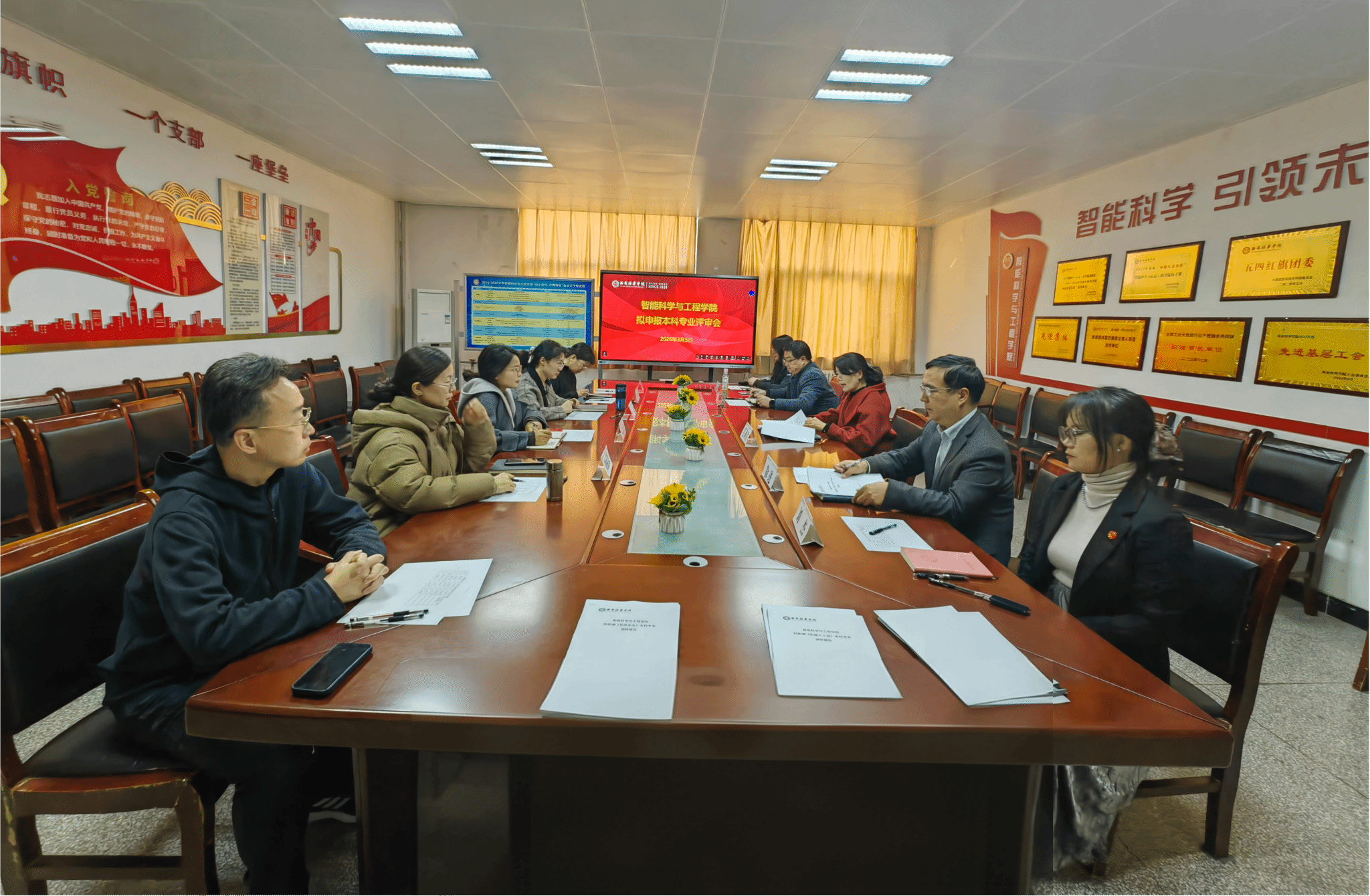 为主动对接陕西省及西安市重点产业发展战略,精准匹配区域人才需求,提升人才培养与地方经济社会发展的契合度,同时为学校申硕工作筑牢专业基础,优化学院学科专业布局,强化新工科建设内涵,2026年3月5日,智能科学与工程学院在学院会议室召开拟申报本科专业评审会。教学指导委员会全体成员及拟申报专业负责人参加会议,会议由教学、科研、产学研副院长毛莉君主持。