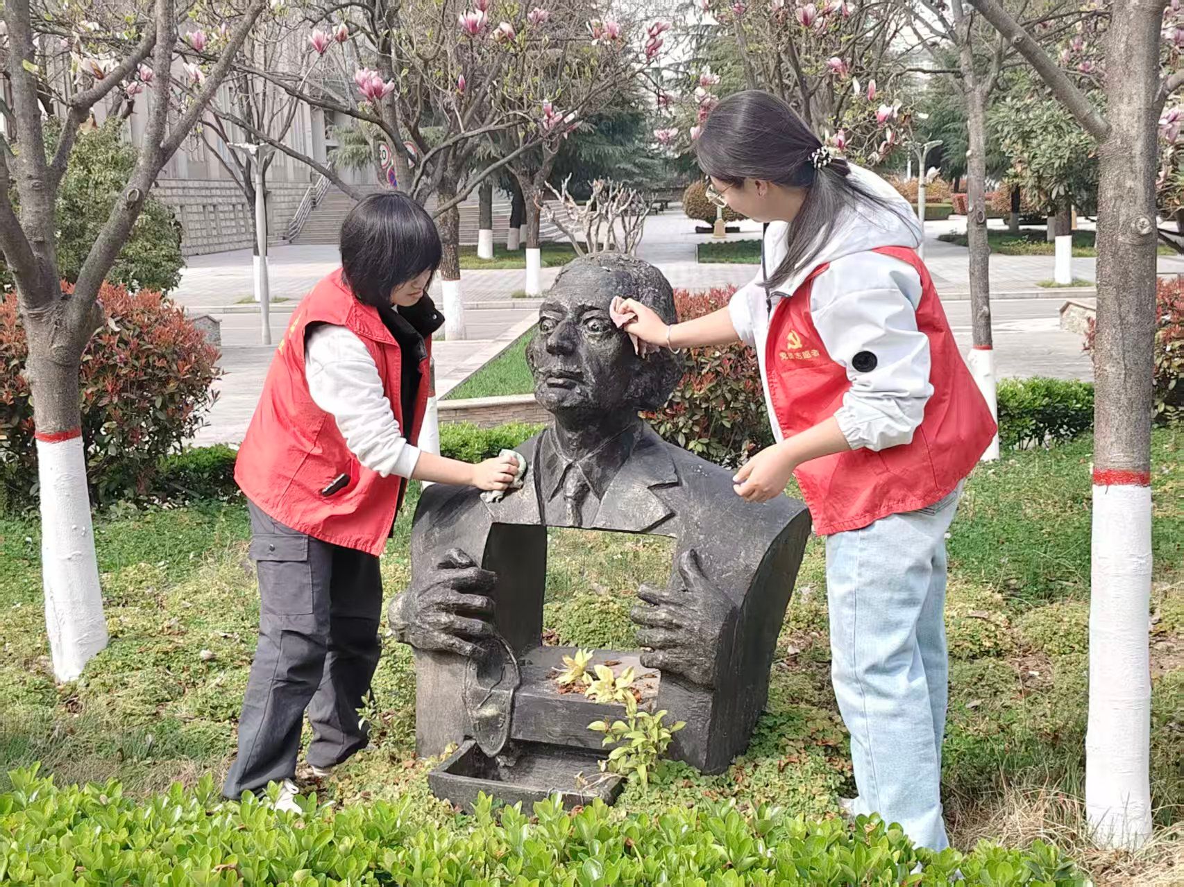 3月11日下午,协会又组织志愿者走进格物学生社区,开展“传承雷锋精神,志愿勇当先锋”主题实践活动。师生们分工协作,手持清洁工具,对楼道走廊、公共区域及消防通道等重点部位进行全面清扫,清除垃圾杂物,擦拭公共设施,以实干诠释奉献精神,有效改善了社区环境。三月中旬,智能科学与工程学院青年志愿者协会先后开展校外街道清扫与校内雕像擦拭两项志愿服务活动。志愿者们分工协作、认真细致,在街道清理垃圾杂物、整治卫生死角,用汗水擦亮城市容颜;在校园细致擦拭雕塑、清除污渍,让校园文化印记重焕光彩。