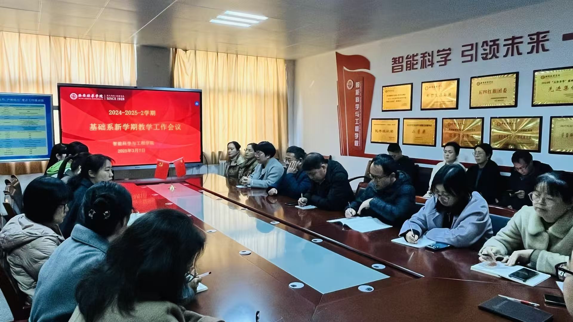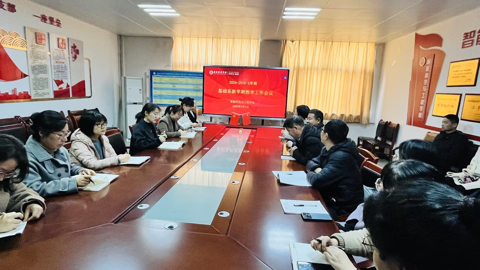 为统筹推进新学期教育教学工作,智能科学与工程学院基础系于3月7日在学院会议室召开新学期首次教学工作会议。会议由系主任万卷主持,基础系全体教师参会,会议主要围绕师德建设、教学质量、毕业实习、毕业设计指导等核心议题展开部署,为新学期教学工作锚定方向。