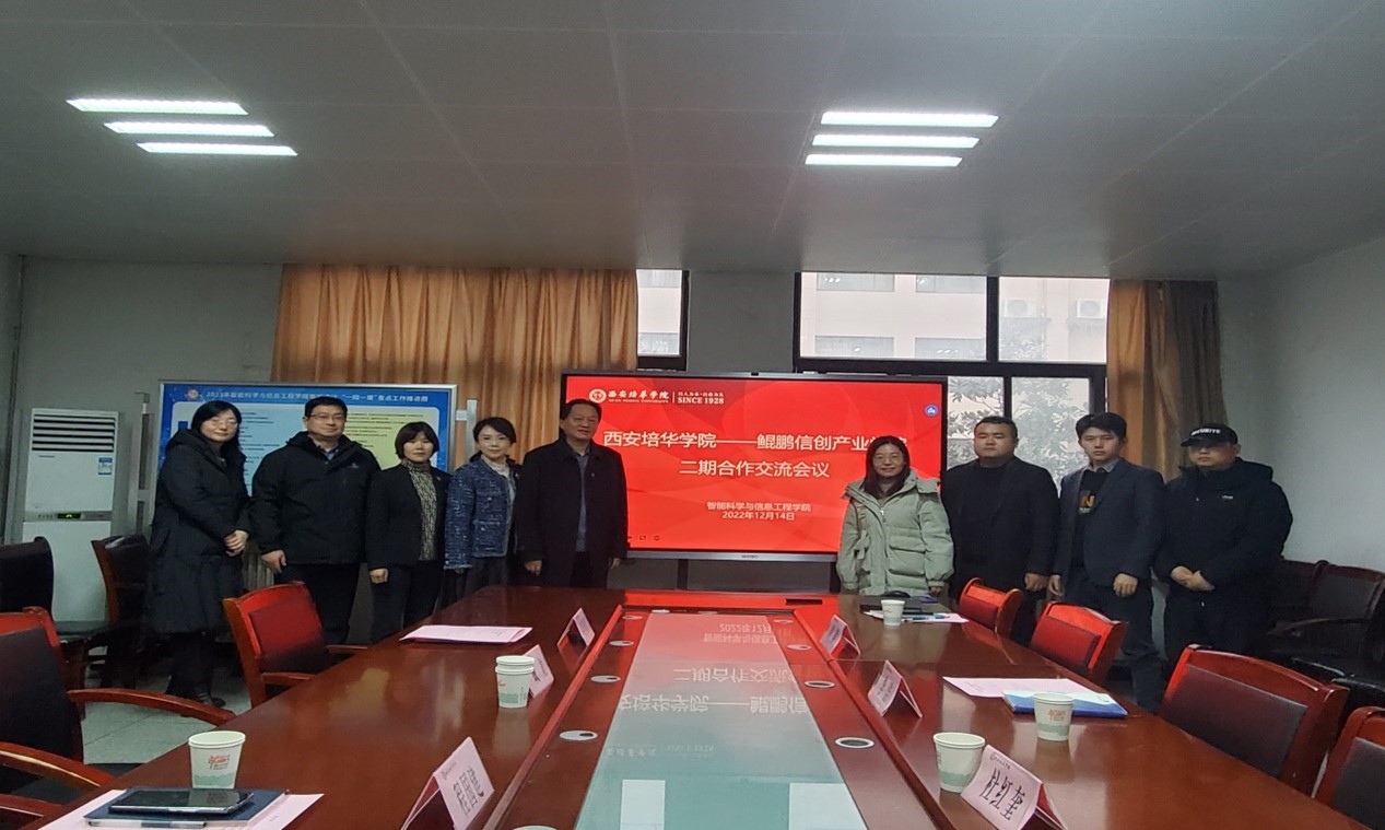 12月14日,在学院会议室召开了西安培华学院——智信鲲鹏产业学院二期建设合作交流研究会。深圳市讯方技术股份有限公司北部片区总经理(线上)杜红奎、陕西教育事业部总经理王姗姗、陕西高校项目部客户经理李浩、北部片区售前产品经理周毅等企业代表、西安培华学院教务管理中心副主任刘斌及智能科学与信息工程学院领导班子成员出席会议。会议由智能科学与信息工程学院院长助理毛莉君主持。