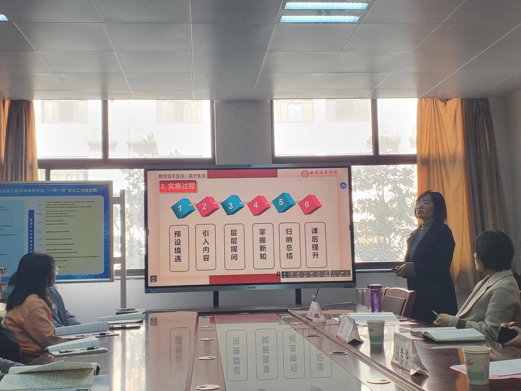 首先,由三位在各类别赛事中获奖的优秀教师对大家进行了应用型示范课展示。张健老师做了“《Python数据分析》应用型课程改革与实践”分享。张老师从应用型课程改革背景、课程设计、课程实施、课程评价等方面进行了详细介绍和课程展示;樊亚云老师做了《线性代数》创新性应用型课程设计分享,从课程设置、教学设置、课程实施、课程评价四个方面分享公共基础课程如何进行应用型改革;胡亚维老师做了题为《立足课堂 以赛促教》主题分享,将各类教师竞赛与应用型课程建设融合,以赛促教、以赛促改,通过参加高级别教学竞赛不断积累教学经验、丰富教学设计,促进应用型课程改革。