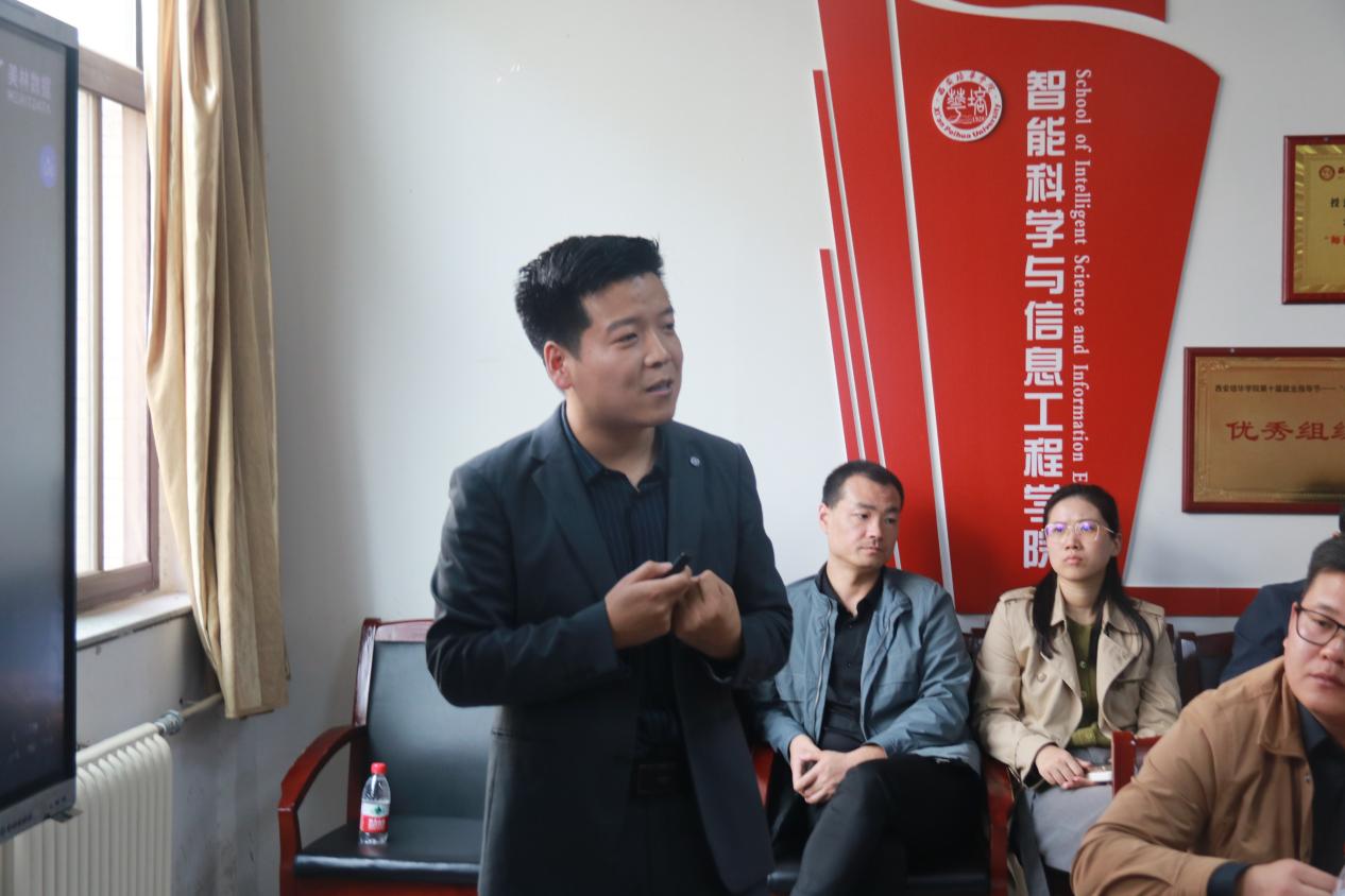 参会嘉宾包括美林数据技术股份有限公司副总裁肖西伟、科大讯飞高教售前咨询总监齐白玉、软通动力西北区域项目总监薛萌、新大陆集团西北总经理汤雪妮、深圳市讯方技术股份有限公司北方片区总经理杜红奎、航天云网科技发展有限责任公司西北副总经理李浩哲、陕西四维数邦科技有限公司校企合作总监穆延涛等。同时,学院领导及教师代表也出席了本次研讨会。会议由西安培华学院智能科学与信息工程学院院长程国建担任主持人。