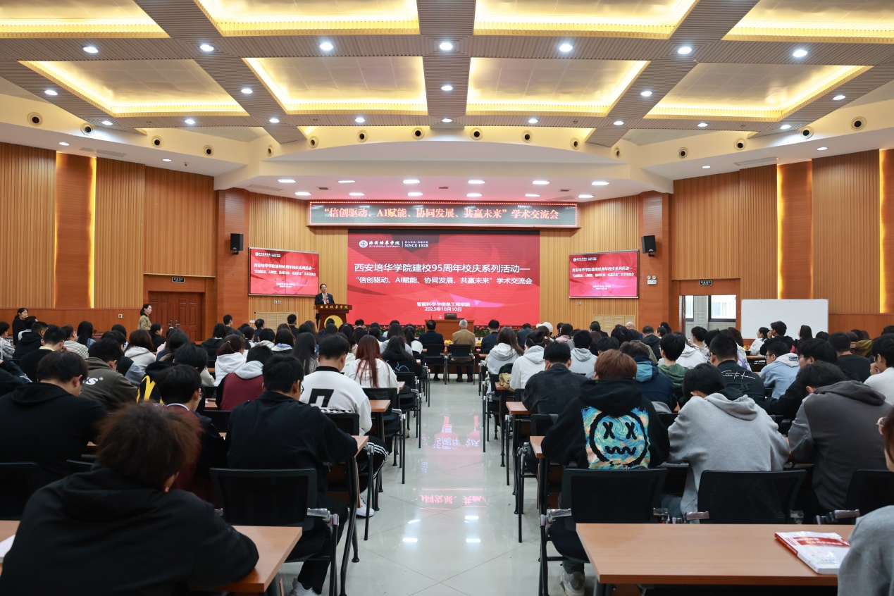 为庆祝西安培华学院建校95周年,2023年10月10日,智能科学与信息工程学院在明德楼四层报告厅举办”信创驱动、AI赋能、协同发展、共赢未来”学术交流会。