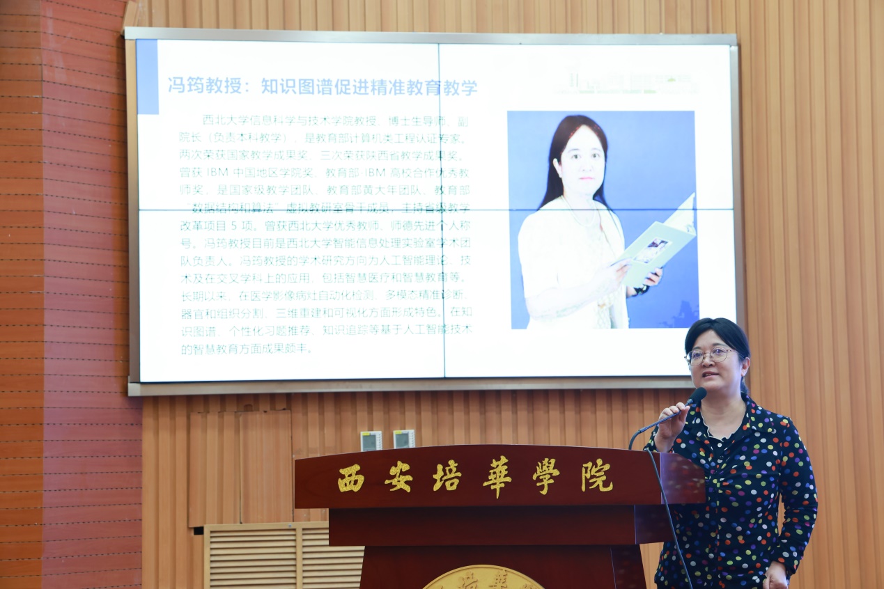 接下来,冯筠教授发表了题为“知识图谱促进精准教育教学”的演讲,分享了知识图谱在教育教学中的应用和推动作用,对于提升教育教学质量和精准教育具有重要意义。