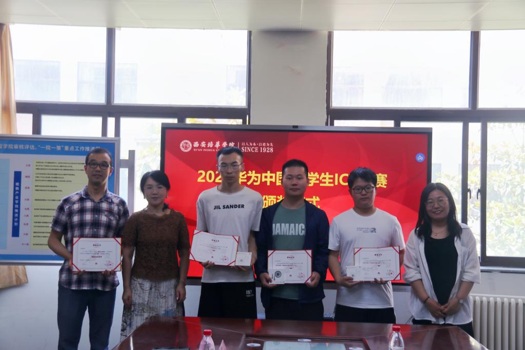 在学院领导的大力支持、精心组织,以及参赛选手的奋勇拼搏下,我校在本届华为ICT大赛实践赛计算赛道的比赛中,取得了突破性的成绩,最终获得陕西省一等奖1项,陕西省三等奖1项,全国三等奖1项。随后,毛莉君助理宣布获奖名单,并开始颁奖。