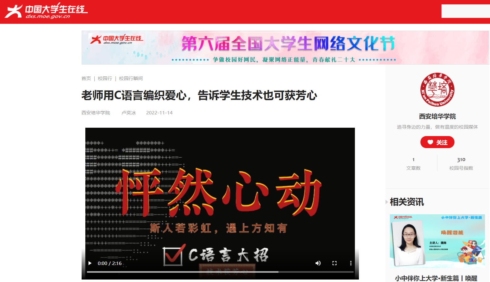 怎样激发学生学习热情,寓教于乐,是教学工作的一大难题。在双十一来临之际,我院智能科学与信息工程学院电子系卢奕冰老师创作的C语言课程设计《怦然心动》,应用C语言相关知识编织爱心,告诉同学们技术也能获得芳心,鼓励同学们以专业为契机,努力学习,用技术表达自己的想法。