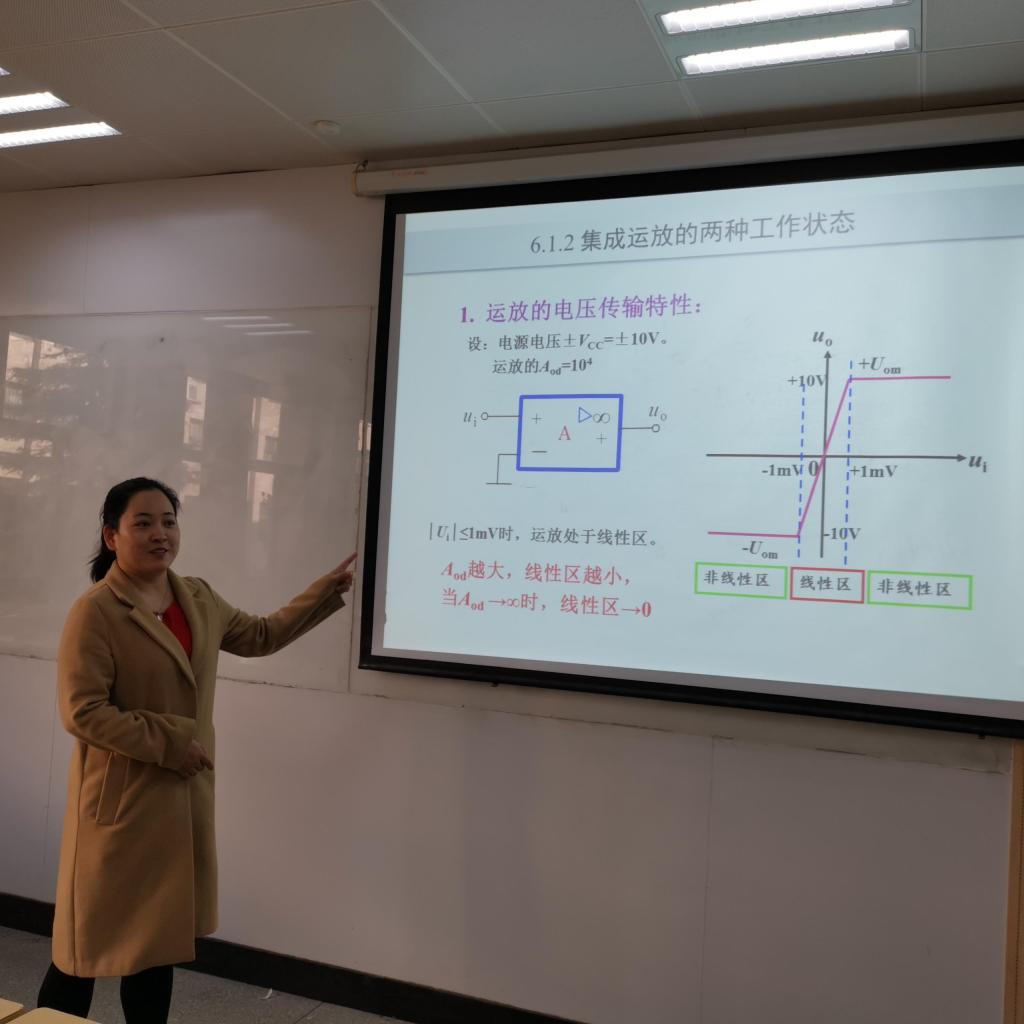 王芳老师所授的课程是《集成运放运算电路分析》,介绍了集成运放工作于线性区时,详细解释了“虚短”和“虚断”的区别,介绍了在分析集成运放所构成的运算电路时,结合电压量的“虚短”和电流量的“虚断”特征,引入电路分析中所学的结点电流法从而得到电压放大倍数等参数关系。