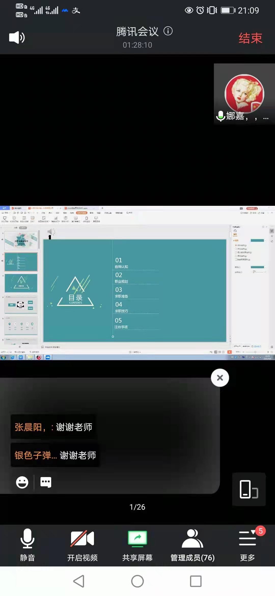 职业规划。陈老师针对职业规划中的“职业”进行了系统的讲解,她提到职业五要素: