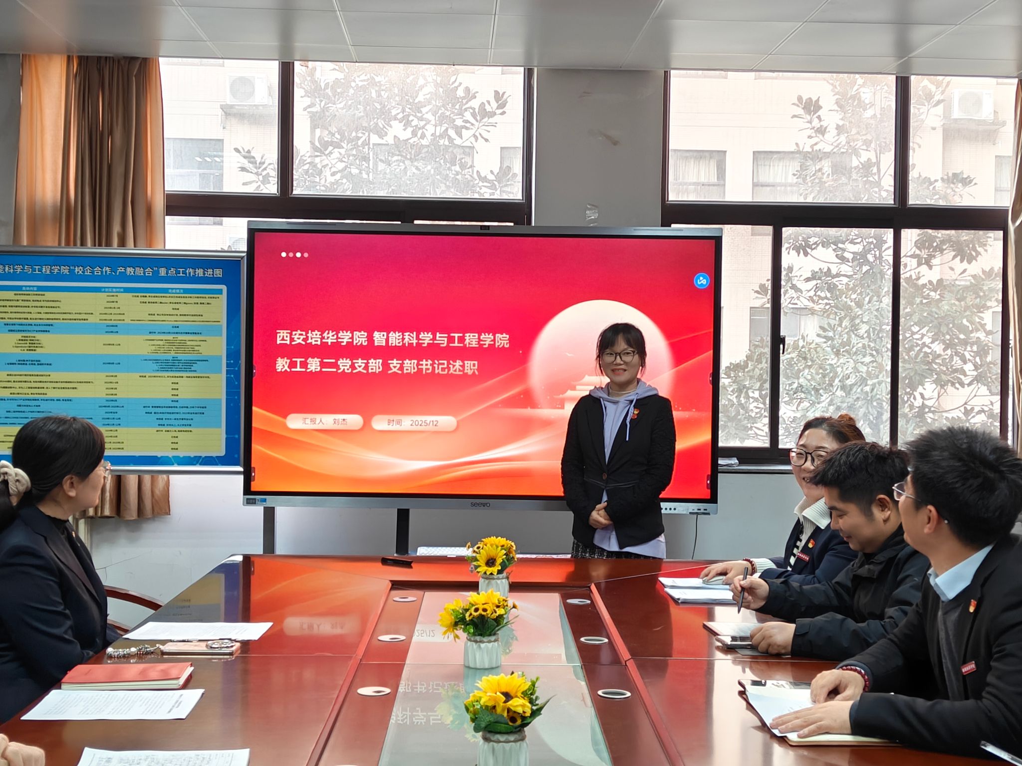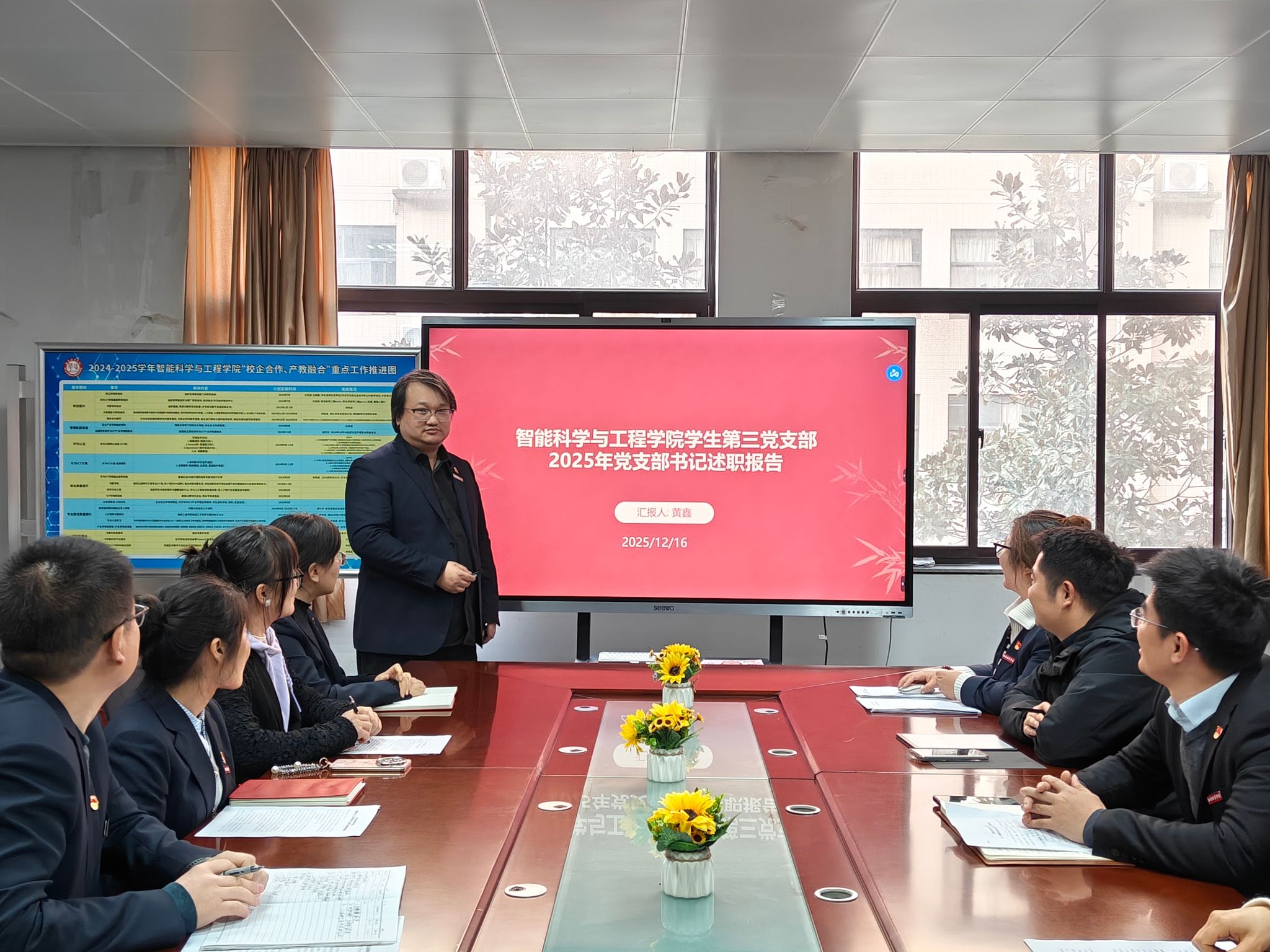 2025年12月16日,学院党委根据《中共西安培华学院委员会2025年度基层党组织党建工作目标考核办法》,智能科学与工程学院党委召开党支部书记2025年党建工作述职会。本次述职会以党委扩大会的形式举行,学院党委书记王林、副书记屈松林、各基层党支部书记及委员、专、兼职党务干事等参加,述职会由学院党委书记王林同志主持。