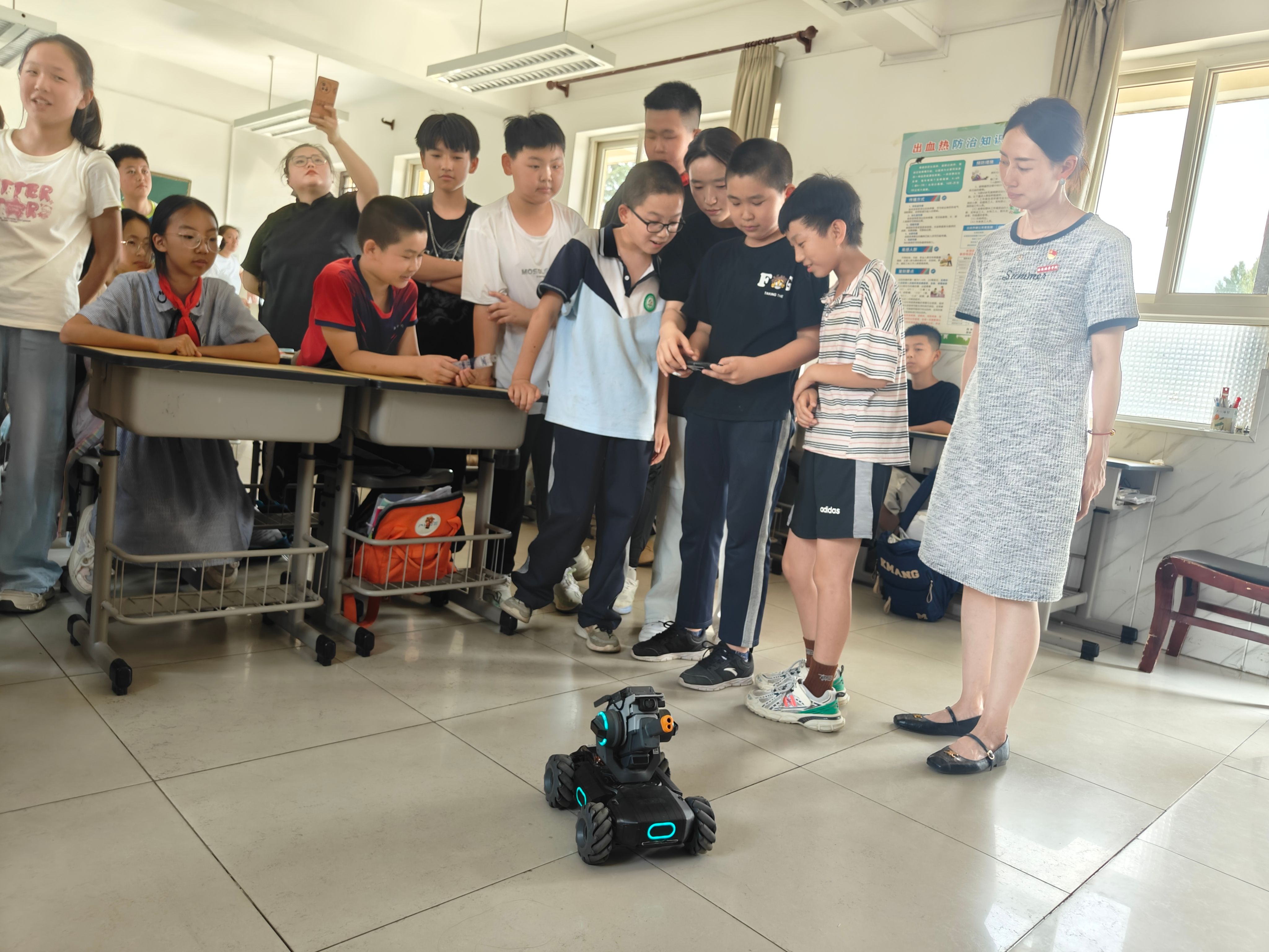 活动中,“智芯”先锋队成员以延安精神为核心,通过革命历史故事讲解、红色圣地文化展示,向小学生们阐释“自力更生、艰苦奋斗”的精神内涵,结合延安时期战略转移的历史背景,引导孩子们理解红色基因的时代价值。同时,软件协会成员带来“单片机与机甲大师探秘”科普环节,通过“机器人如何走路”等趣味提问切入,展示单片机开发板实物,类比“小型电脑”的控制原理,并现场演示机甲大师避障、移动等功能,邀请学生体验指挥机器人完成绕障任务,将抽象的科技知识转化为可感知的互动体验。