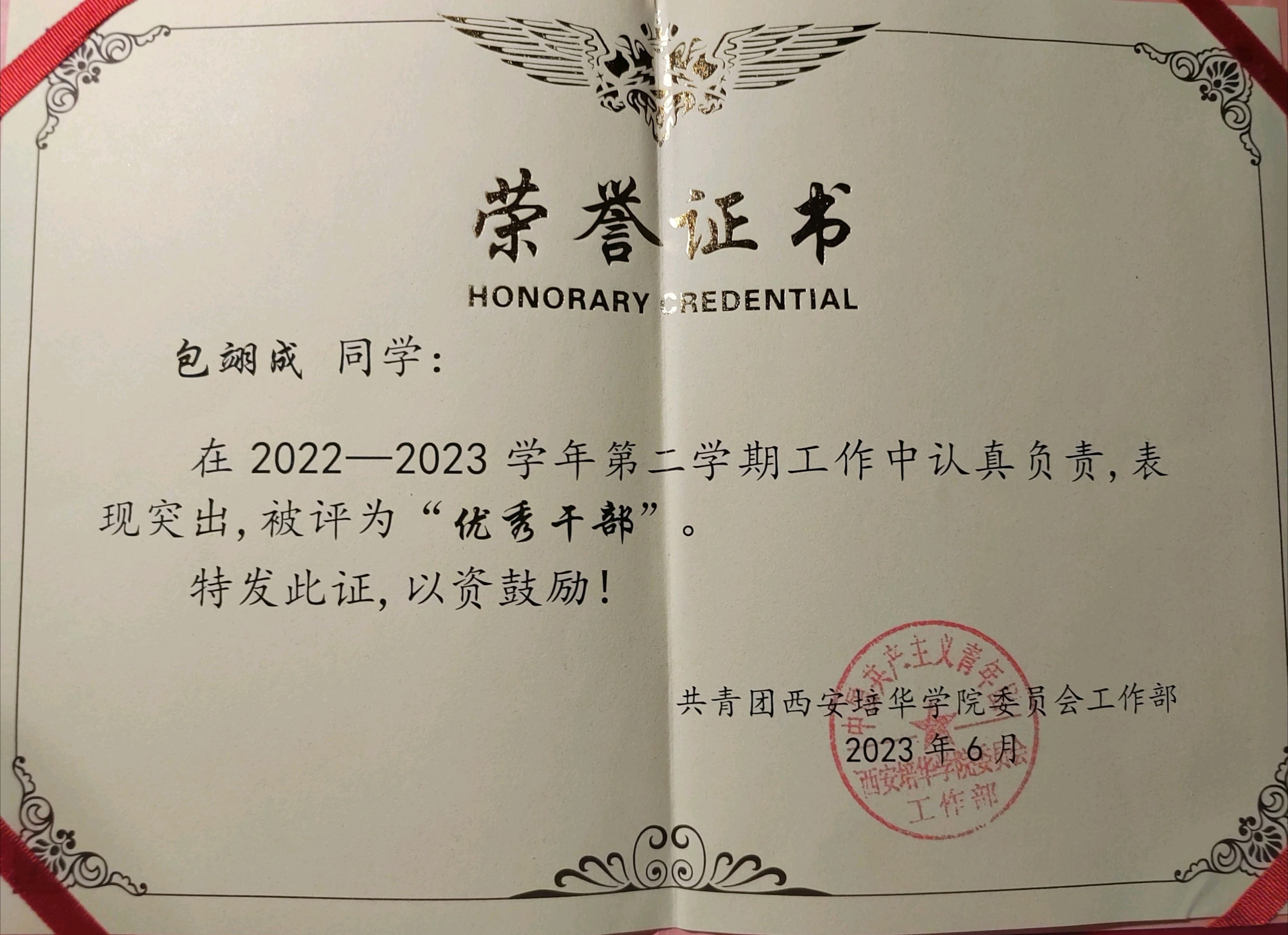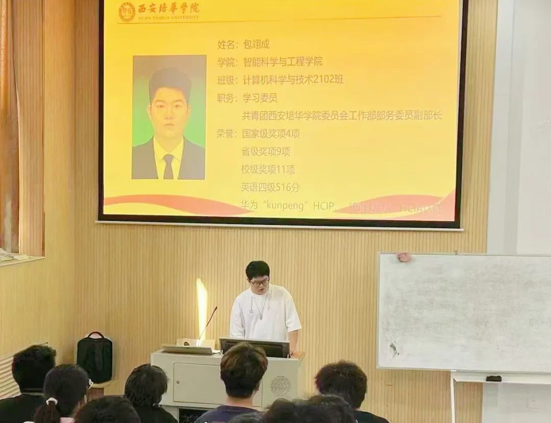 包翊成,男,汉族,2021级计算机科学与技术专业2102班学生,中共预备党员,现任班级学习委员,曾担任校团委工作部副部长、公寓楼副层长。学习成绩优异,专业排名前4%,连续两年荣获“三好学生”,国家奖学金获得者。