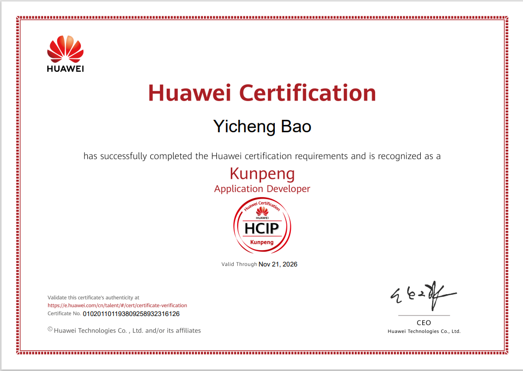 他是勇攀高峰的“学霸”,也是屡获佳绩的“竞赛达人”,累计斩获国家级奖项4项、省级奖项10项、校级奖项11项;同时持有华为“Big Data”HCIA与“Kunpeng”HCIP双认证,在各类科研竞赛中屡创佳绩。