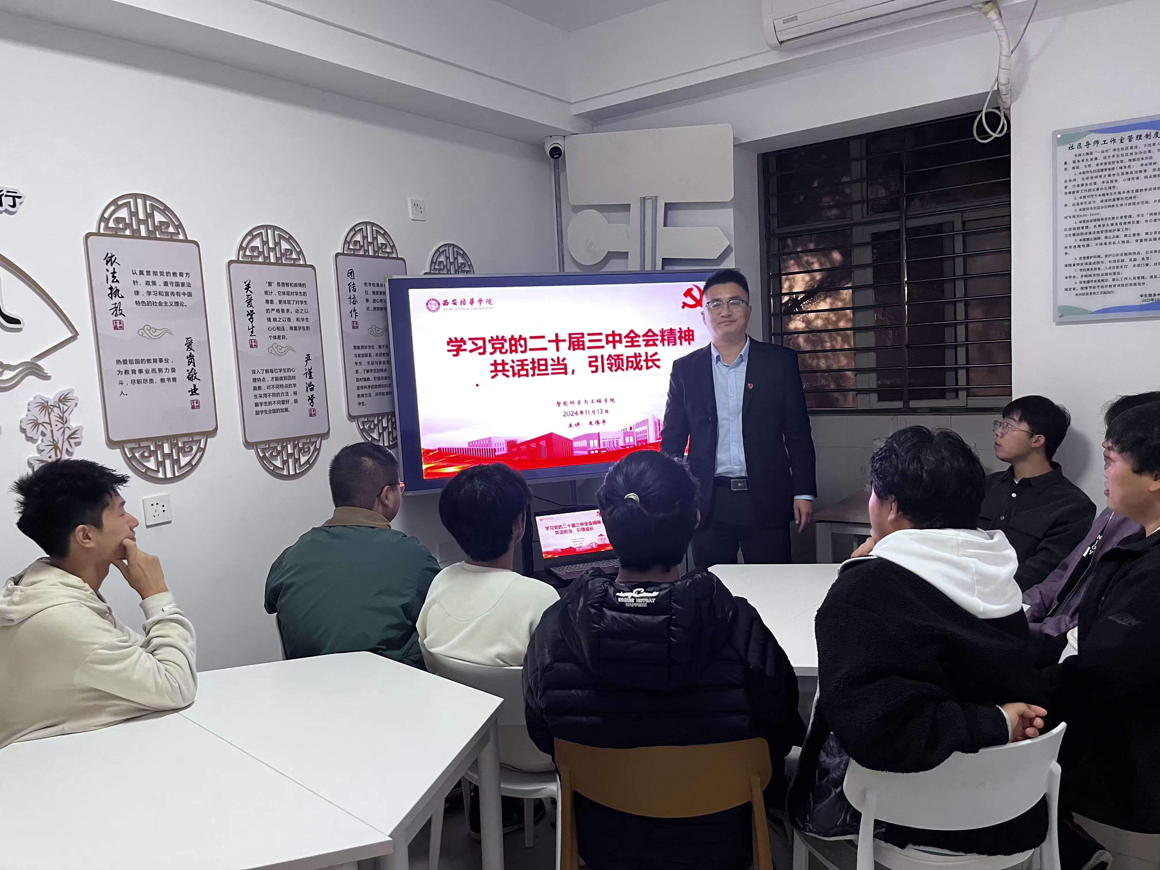 为深入学习党的二十届三中全会精神,加强学生党员干部培养,提高学生党员的党性修养,11月13日,智能科学与工程学院党委副书记王伟平老师在格物社区18公寓党员活动室开展“学习党的二十届三中全会精神”主题党课,格物社区18公寓学生党员干部代表参加。