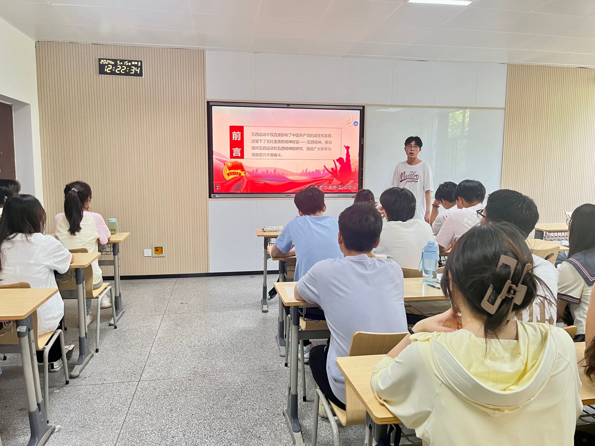 本次团课由智能科学与工程学院团委科技实践部部长乔阳阳围绕“弘扬五四精神,争做新时代合格共青团员”为主题进行授课。作为跨越世纪的一代人,我们有责任将自己即将送走的世纪中所积累的精神遗产带进新世纪,五四精神就属于这样的精神遗产。因此,我们应当以继承为前提,弘扬五四精神。