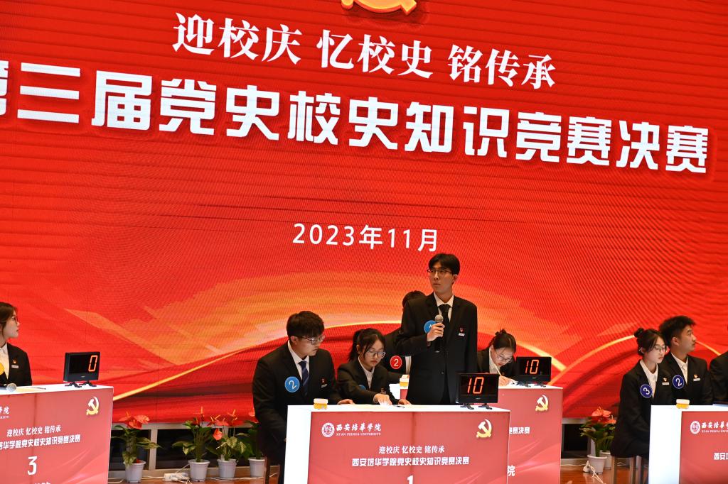 代表我院出战本次决赛的为杨开鹏、乔阳阳、杨忆环3位场上竞答选手和童怡月等5位学生组成的校史展示组。决赛中通过“过关斩将”“眼疾手快”“争分夺秒”“破釜沉舟”“风采展示”等五个环节的比拼以优异成绩荣获第二名,充分展现了我院学子奋勇争先,团结拼搏,力争上游的精神风貌,良好的竞技风采和团队精神展现的淋漓尽致!更加深刻地体现出“薪火传承守初心,扬帆远航担使命,学党史铭校史,踔力奋发向未来”的宏伟口号!计算机科学与技术专业2204级杨开鹏被评为优秀选手。