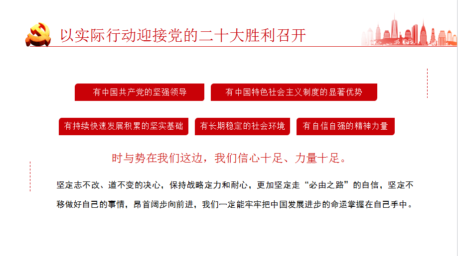 他说,2022年是党的二十大召开之年,是奋力迈向第二个百年奋斗目标的关键之年。以更加坚定的理想信仰、更为崇高的使命追求、更具扎实的政治作风,迎接党的二十大召开是每一名共产党员的根本要求和重大课题。