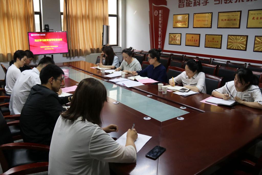 为切实做好党史学习教育工作,推进党史学习教育持续开展,根据校党委党史学习教育领导小组关于党史学习教育督导检查工作方案的安排,2021年6月17日,校党史学习教育领导小组督导检查一组在党委工作部陈玲部长带领下,一行5人来我院督导检查党史学习教育工作,我院党总支书记兼行政副院长南兵、副书记王林及部分总支委员、教师及学生代表参加会议。