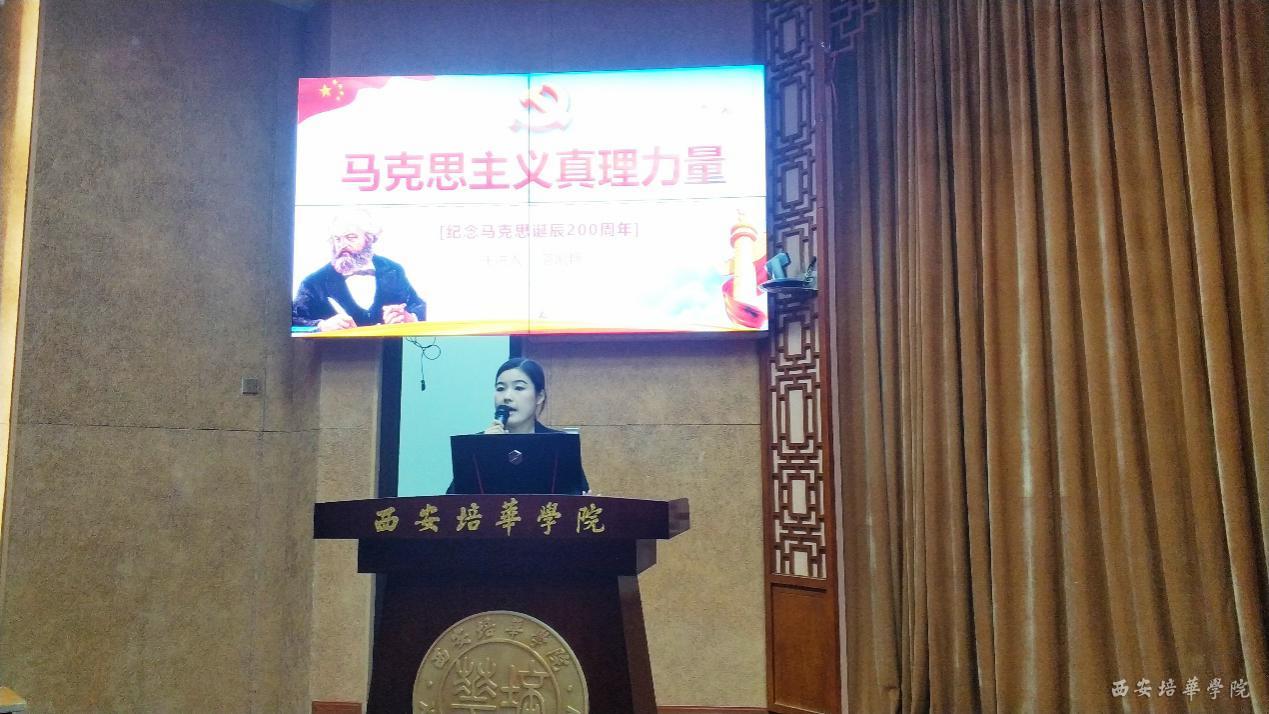 智能科学与信息工程学院学生党支部于2018年5月10日下午18:00在国学大讲堂开展了“马克思主义真理力量暨纪念马克思诞辰200周年”党课学习教育活动,本次党课由学生党支部书记答凯艳老师主讲,参与党课学习教育活动的学生包括我院全体学生党员、预备党员、本期发展对象及积极分子。