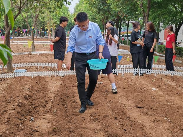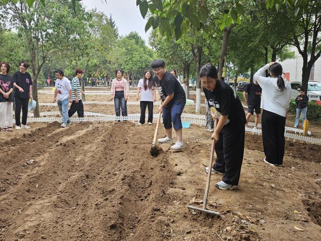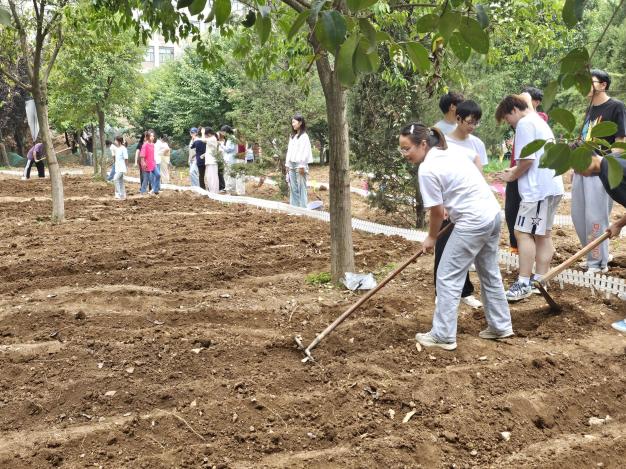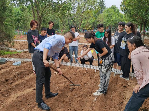活动开始前,学院为各班级划分责任片区、备好劳动工具,现场教学向同学们讲解种植方法,大家在认领的“责任区”积极开展劳动教育实践活动。