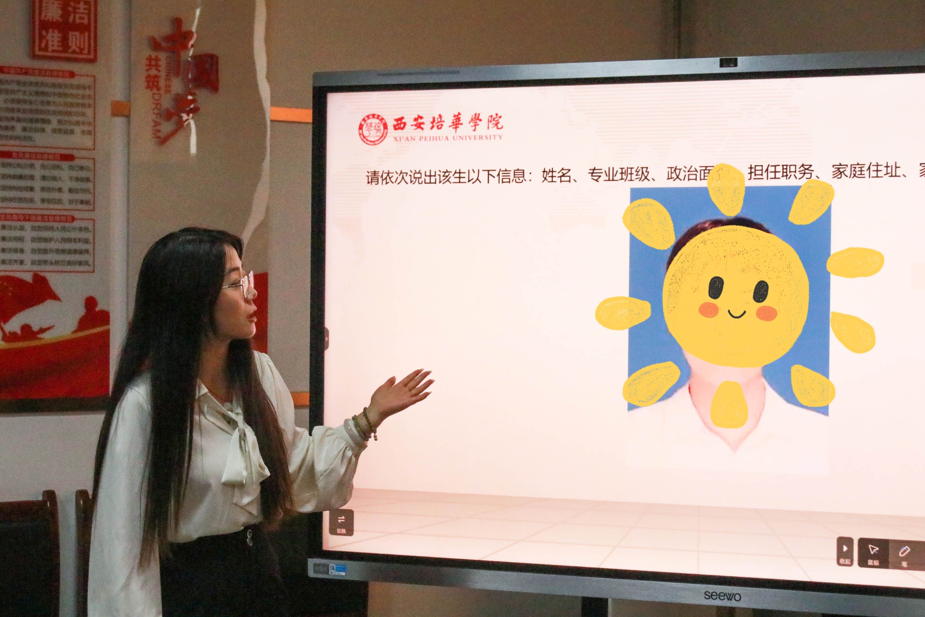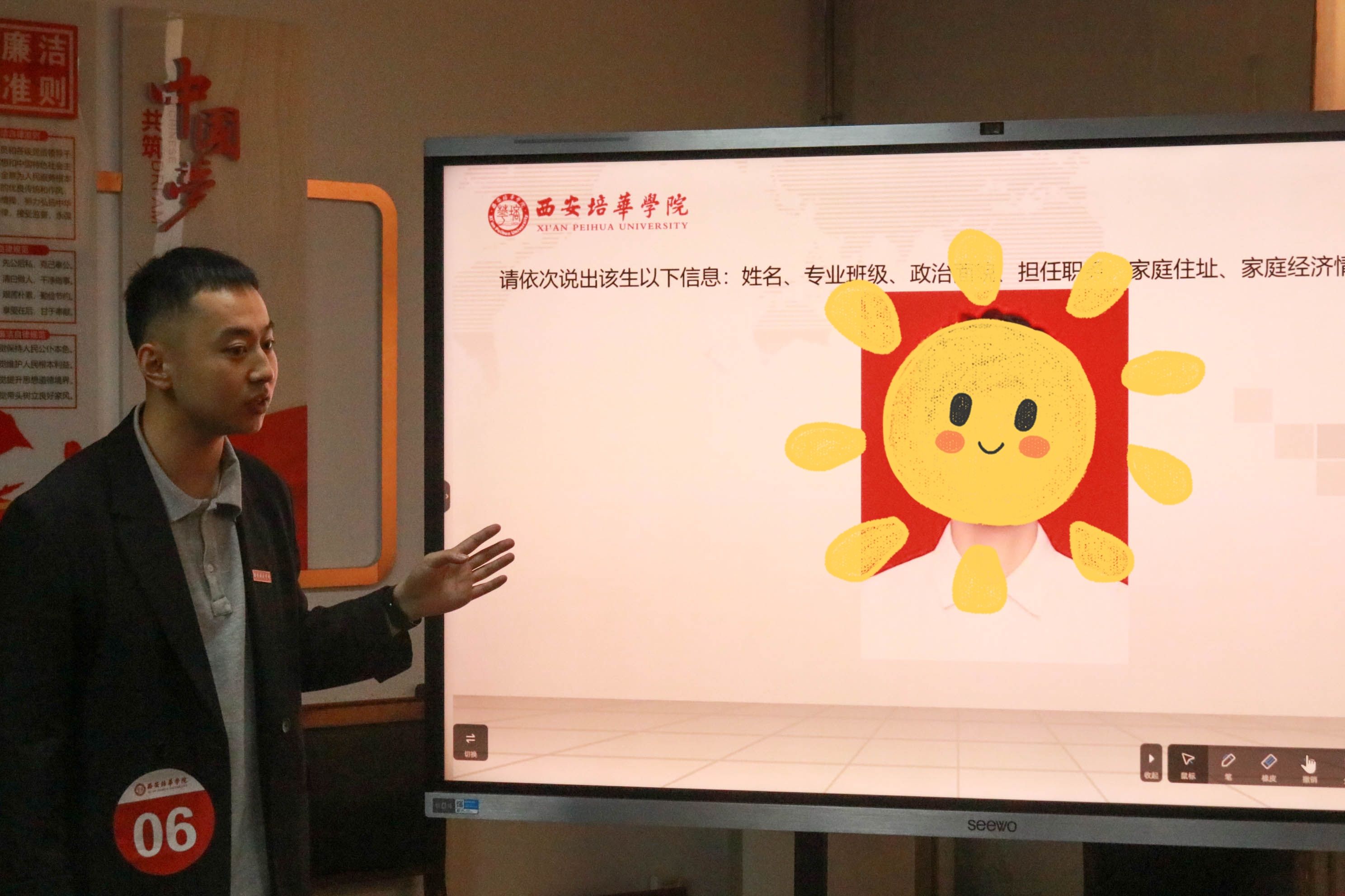 此环节主要考察辅导员对所带学生基本情况的熟悉程度。大屏幕随机滚动,从每位辅导员所带学生中随机抽5名同学,辅导员需要一一陈述所带学生信息,具体信息包括学生姓名、专业班级、政治面貌、担任职务、家庭住址、家庭经济情况、寝室号码等基本信息。