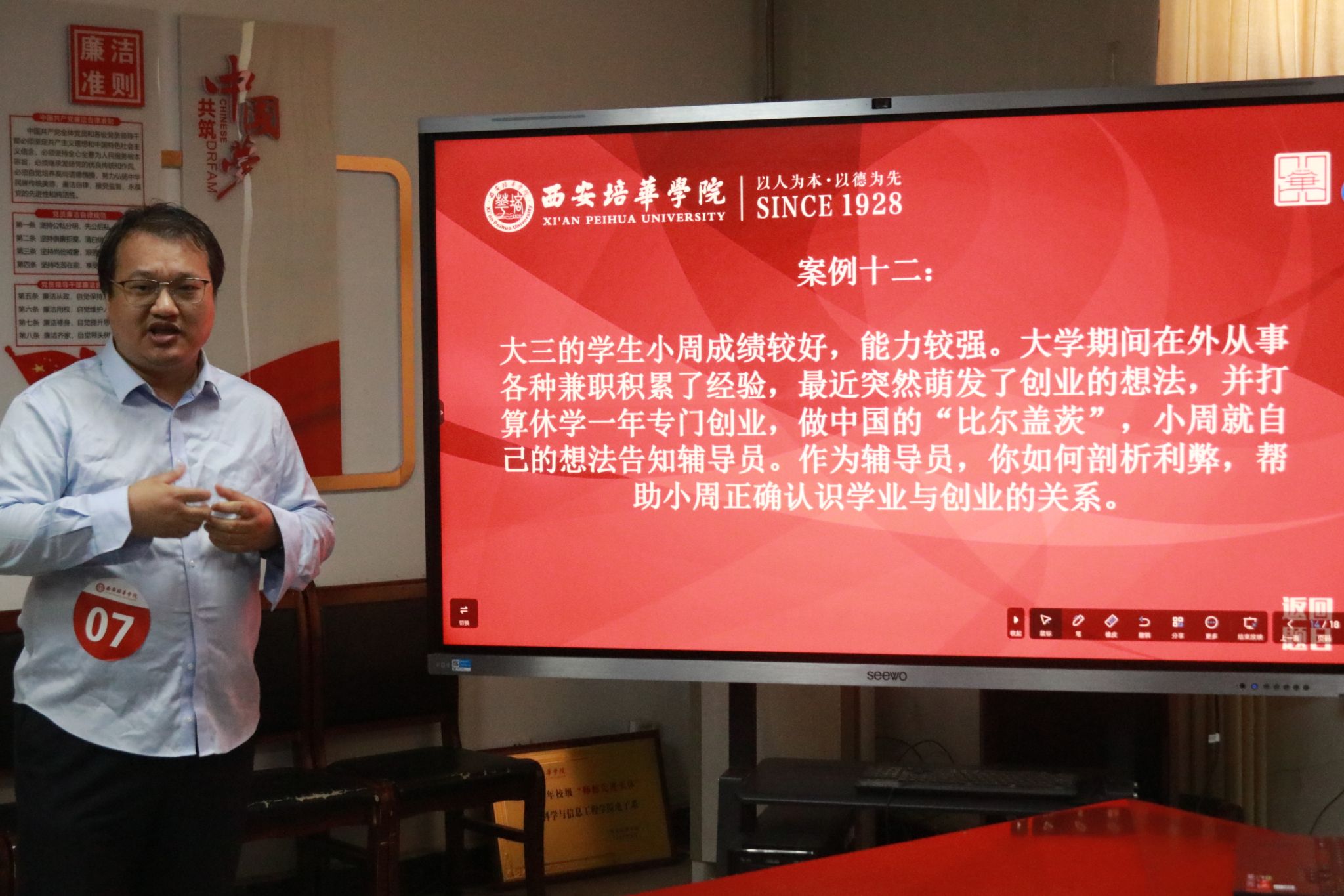 案例分析环节主要考察辅导员综合运用理论分析问题、研判问题、解决问题、应急处理突发危机事件能力。根据赛前抽取的比赛题目,各位辅导员围绕学生案例进行分析,介绍自己的分析思路以及处理办法,与此同时,分享自己担任辅导员工作期间所处理的类似或者相关育人案例。