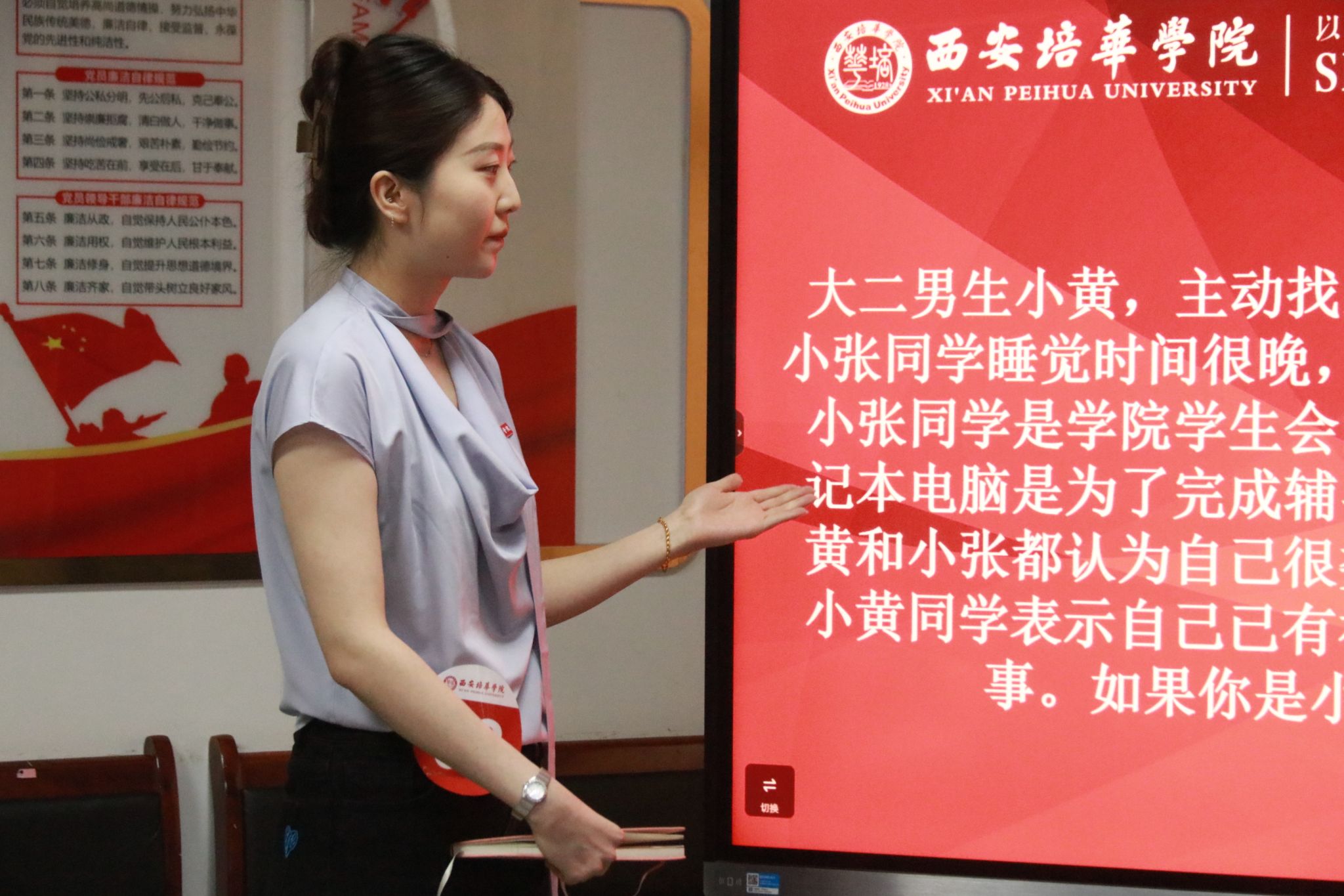 本次比赛主要分为基础知识测试、案例分析、谈心谈话和学情熟知四个环节,重点考察辅导员的理论知识储备、运用理论解决实际问题的能力和对自己所带学生基本情况的熟悉度。