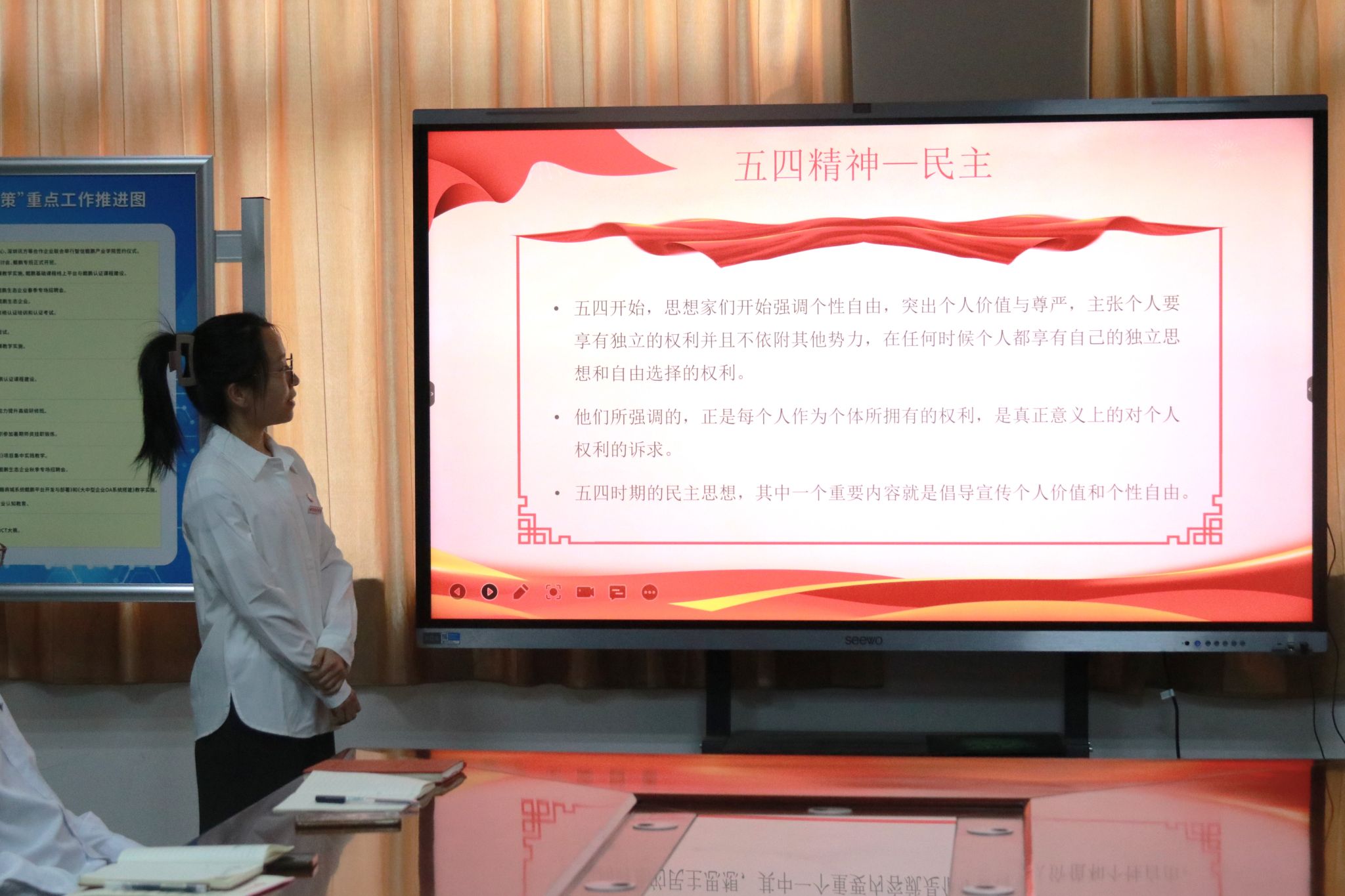为深入学习宣传贯彻习近平新时代中国特色社会主义思想和党的二十大精神,传承和发扬“爱国、进步、民主、科学”的伟大五四精神,不断提升我院团干部思想政治工作的理论水平、专业素养和工作能力,引导和激励全市广大团员青年为奋力谱写中国式现代化篇章贡献青春力量,2024年5月6日18:30分,智能科学与工程学院团委在育英楼3204(西)组织开展“团干部上讲台百千万行动”系列团员青年教育培训。
