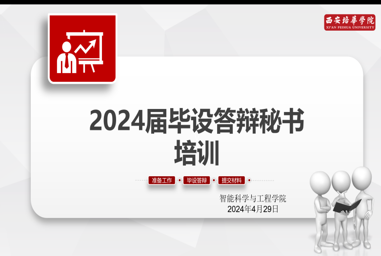 为切实做好2024届毕业论文(设计)答辩工作,保障和提高本科人才培养质量,2024年4月29日,智能科学与工程学院2024届毕业论文(设计)答辩工作培训会在3204会议室召开,会议由毛莉君副院长主持。