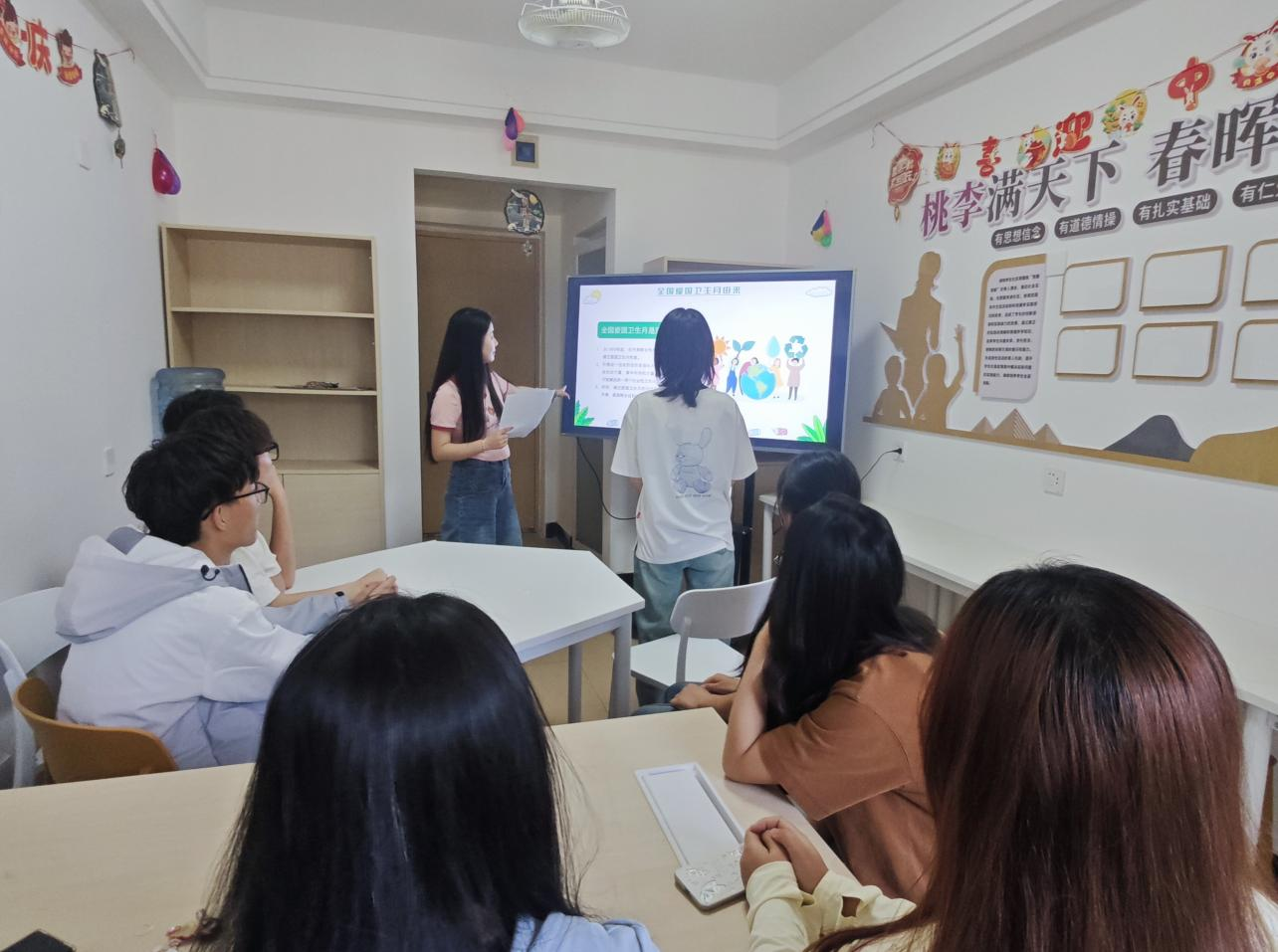 活动开始,仵怡欣老师为同学们讲述了全国爱国卫生月的由来,使同学们了解到健康生活的重要性,并让大家分享生活中看到的不卫生行为,了解不卫生行为对身体造成的危害。不卫生行为不但容易导致各种疾病的发生,而且对同学们的心理健康也有不良影响,有可能导致抑郁等心理问题,并且不卫生行为对环境也产生了负面影响,不仅破坏自然美景,还会污染空气、水质、危害生物多样性。