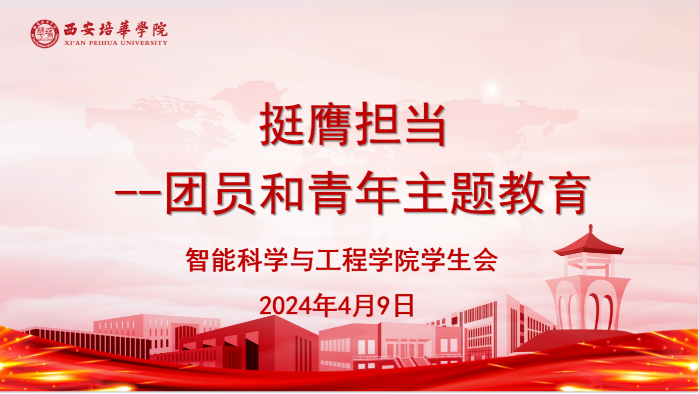 为全面贯彻党的二十大,巩固深化团员和青年主题教育成果,学习贯彻习近平总书记关于青年工作的重要思想,把牢新时代青年工作的主题,引导团员和青年了解党领导下的中国青年运动百年历史,以实现中华民族伟大复兴为己任,努力成长为有理想、敢担当、能吃苦、肯奋斗的新时代好青年。2024年4月9日,智能科学与工程学院学生会于3502教室召开了“挺膺担当——团员和青年主题教育”活动。