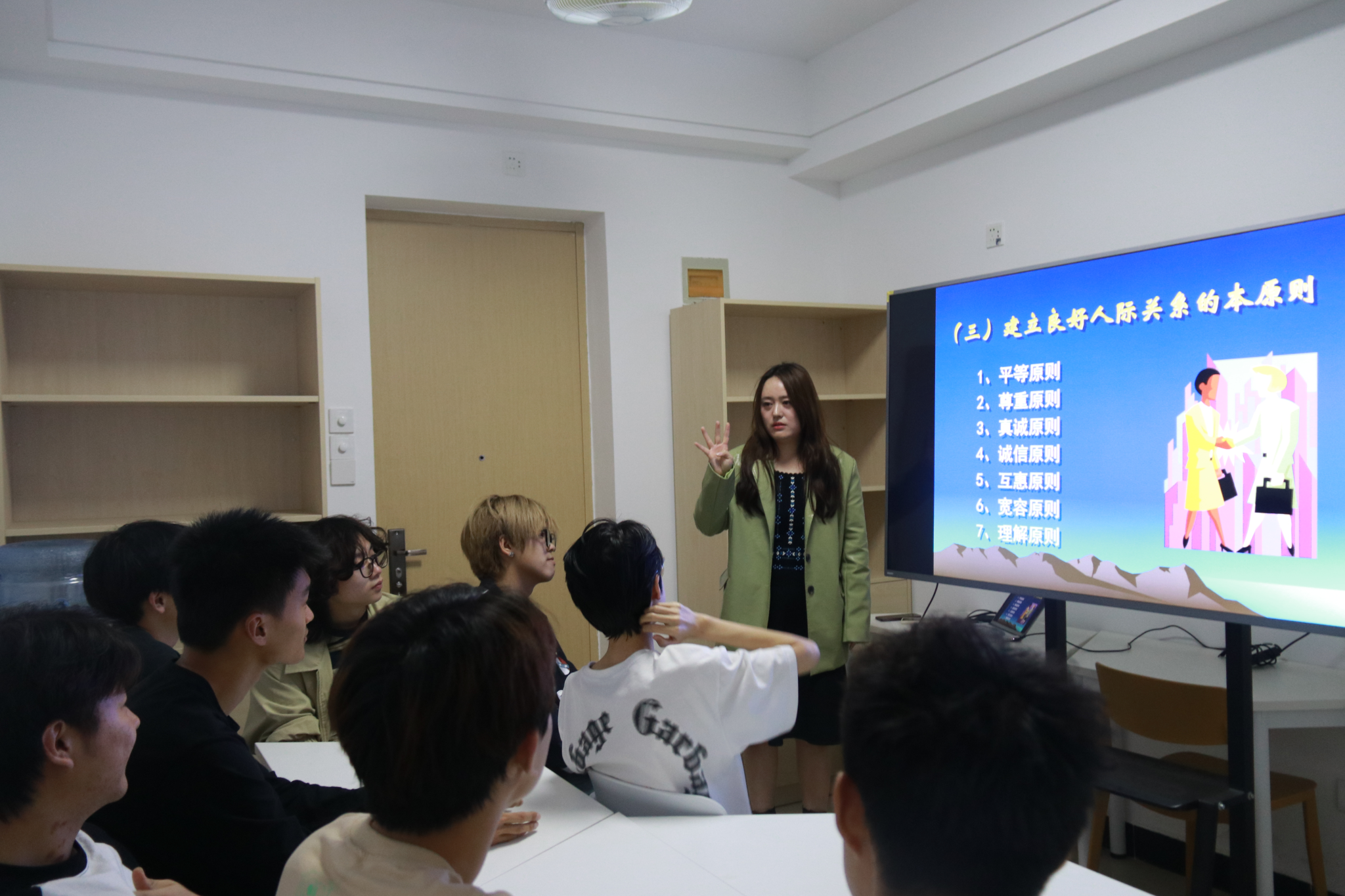 2024年4月8日16:30格物学生社区9#社区导师工作室,高珊珊老师以“有效化解宿舍矛盾,建立健康人际关系”为主题,为广大学生带来了一场富有启发性的讲座。此次活动旨在帮助学生们更好地理解人际关系的重要性,掌握处理宿舍矛盾的有效方法,进而促进宿舍的和谐氛围。