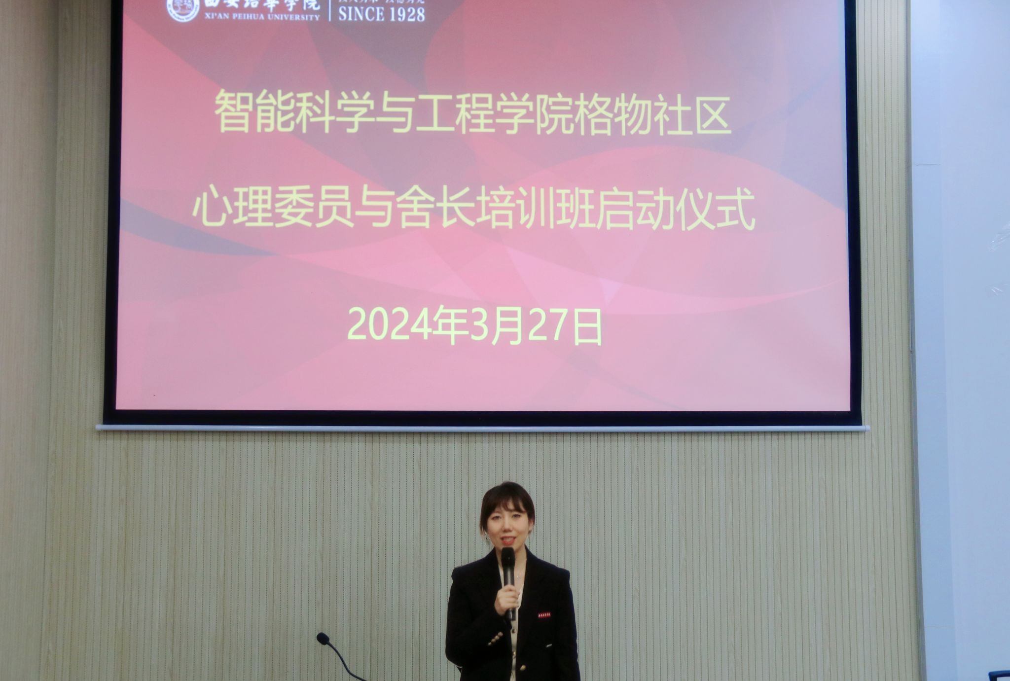 活动由智能科学与工程学院学生干事高珊珊主持,智能科学与工程学院党委书记、行政副院长王林及学生社区辅导员到会参与启动仪式。智能科学与工程学院全体心理委员、宿舍长以及9号、13号、16号、18号公寓楼楼长和层长参加此次培训。