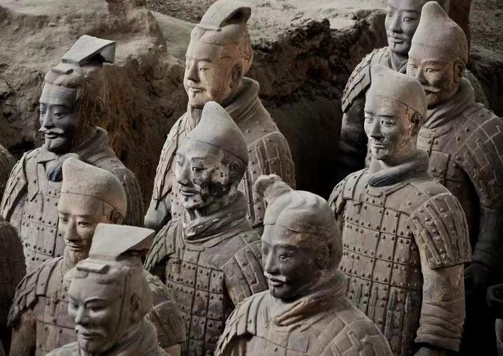 兵马俑,即秦始皇陵兵马俑,亦简称秦兵马俑或秦俑,是第一批全国重点文物保护单位、第一批中国世界遗产,位于今陕西省西安市临潼区秦始皇陵以东1.5千米处的兵马俑坑内。先后有200多位外国元首和政府首脑参观访问,成为中国古代辉煌文明的一张金字名片,又被誉为世界十大古墓稀世珍宝之一。兵马俑是古代墓葬雕塑的一个类别。古代施行人殉,奴隶是奴隶主生前的附属品,奴隶主死后奴隶要作为殉葬品为奴隶主陪葬。1987年,秦始皇陵及兵马俑坑被联合国教科文组织批准列入《世界遗产名录》,被誉为“世界第八大奇迹”。