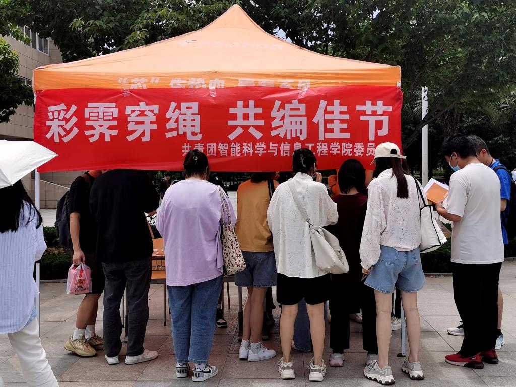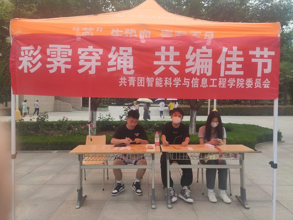 端午节起源于中国,在古百越地区崇拜龙图腾的部落举行图腾祭祀的节日该图腾在端午日有赛龙舟的习俗。战国时期楚国的屈原在端午日投江自尽,统治者为树立忠君爱国的标签将端午作为纪念屈原的日子。为丰富学校学生文化生活,调动大家的积极性,感受传统佳节的文化底蕴,智能科学与信息工程学院团委于6月2日在综合楼西广场开展“彩霁穿绳,共编佳节”端午节系列活动。