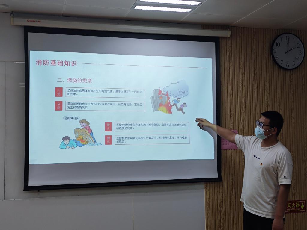 电子信息工程2001班在开展“春季防火安全教育”时,团支书王一体同学通过PPT展示、防火安全短视频等方式,与大家共同学习和交流了春季校园防火及应急应对措施、宿舍火灾安全隐患及自我救护、灭火器的选择及使用方法等防火安全基础知识。