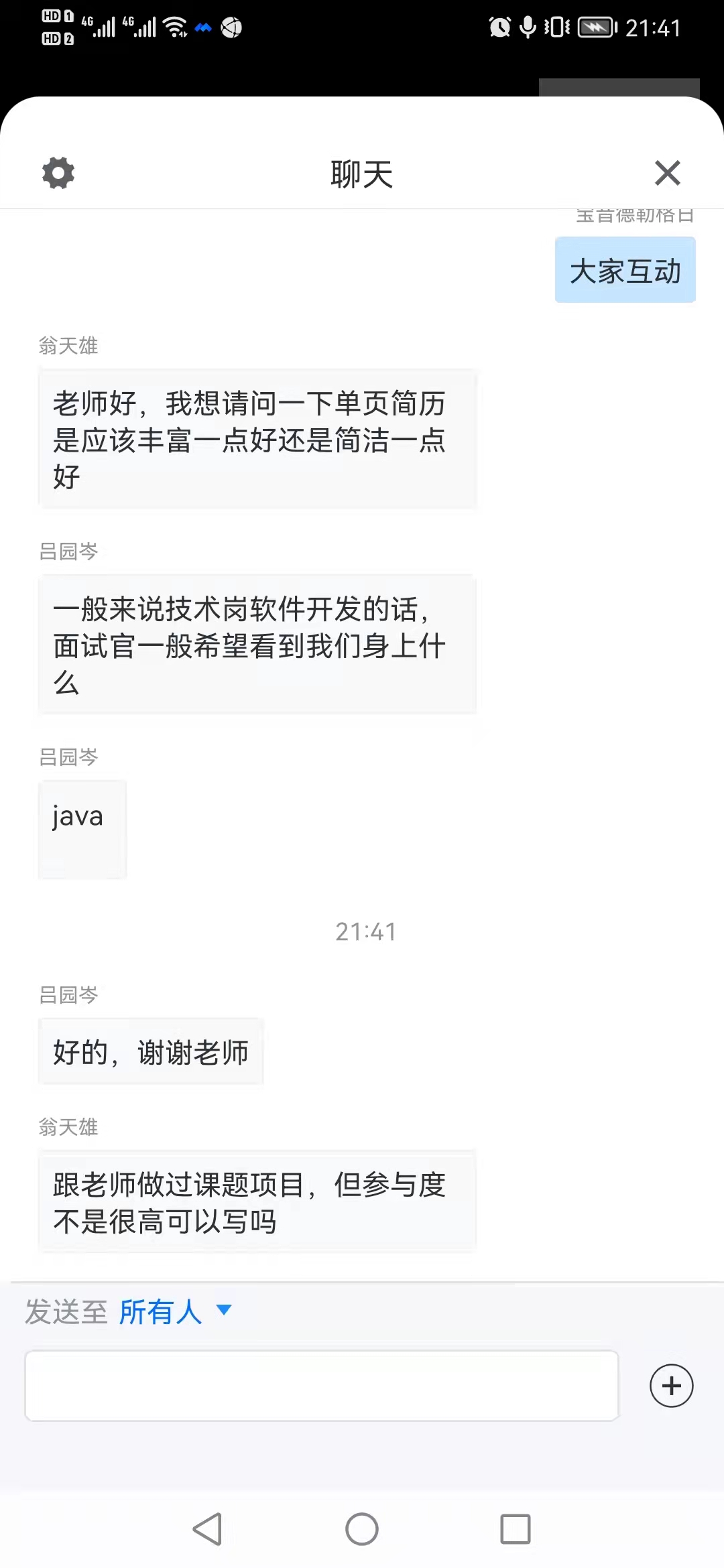 通过简历的赏析,与同学们进行互动交流,研讨简历制作中的小技巧。同时进行面试经验的指导,你要有能力有信心去匹配这个岗位,向面试官看到你的价值,与你进行有效的沟通是面试成功的一个关键因素。