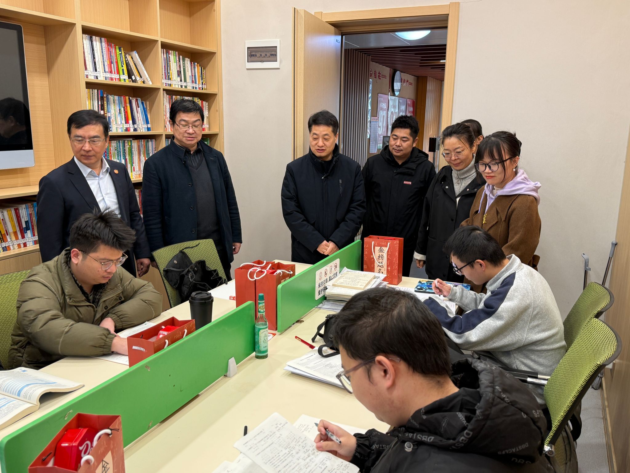 心栖梦归处,不负韶华年。随着 2026 年全国硕士研究生招生考试进入关键冲刺阶段,为帮助考研学子缓解备考压力、坚定上岸信心,以饱满状态迎接挑战,2025 年12月15日中午,智能科学与工程学院领导班子带领各系主任、老师代表及毕业班辅导员,先后前往学生公寓、图书馆等备考集中区域,开展考研学子慰问活动,为同学们送上暖心关怀与殷切嘱托。